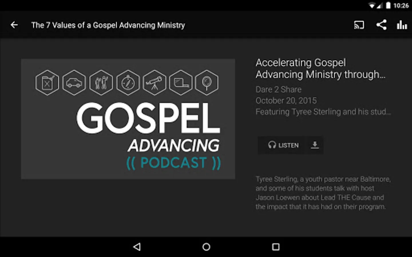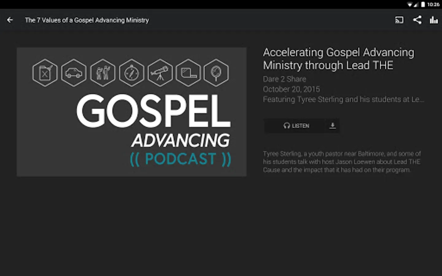 This mobile application provides links and information about each of the 7 values as well as a short encouraging video testimony from a ministry leader in the trenches. There is also a ministry assessment tool to help you and your team measure progress. Best practices have been gathered from hundreds of ministries around the nation for idea-sharing. And you can use this app to share your best practices, resources and ideas as well! Join the community, listen to the Gospel Advancing Ministry podcasts and be a part of advancing the Good News to every teenager!