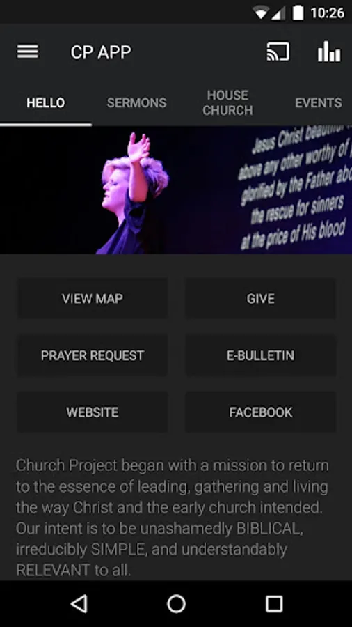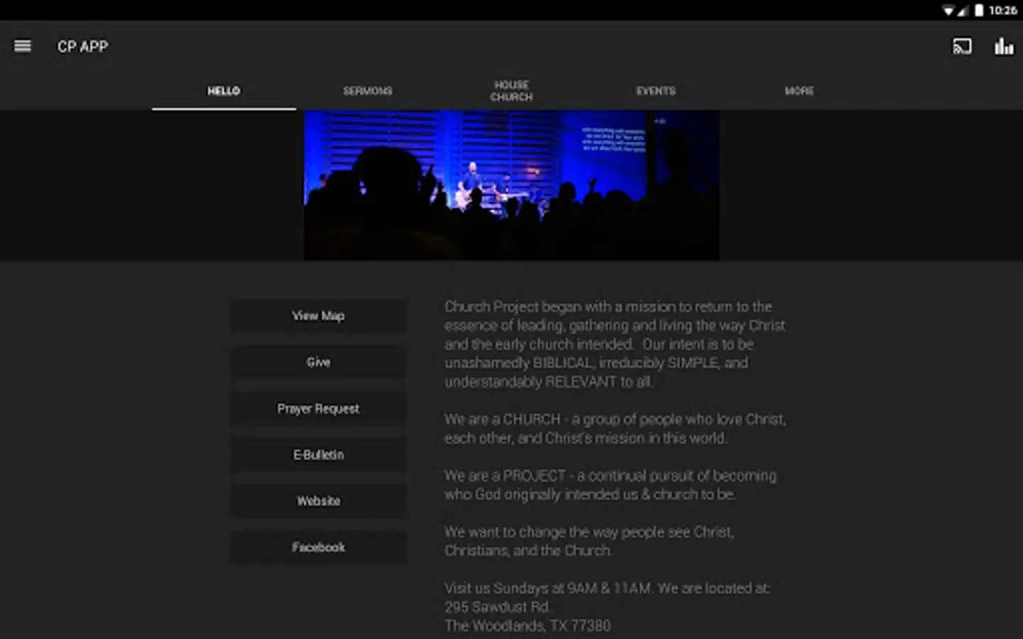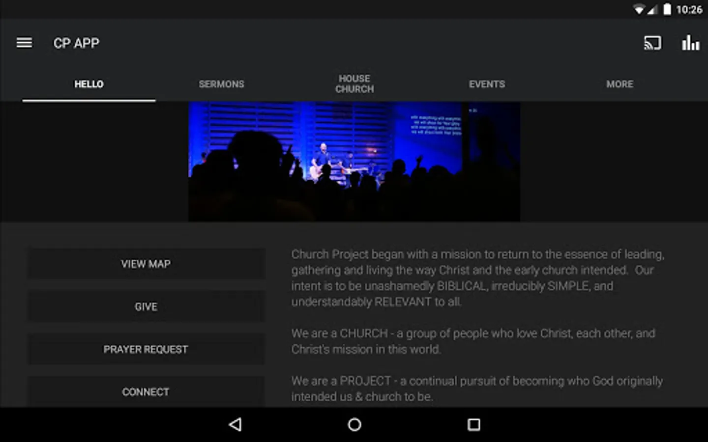 This is the central point of communication to get connected in the life of Church Project. Through this app you can check out upcoming events, find House Churches near you, listen/watch podcasts, & much more!