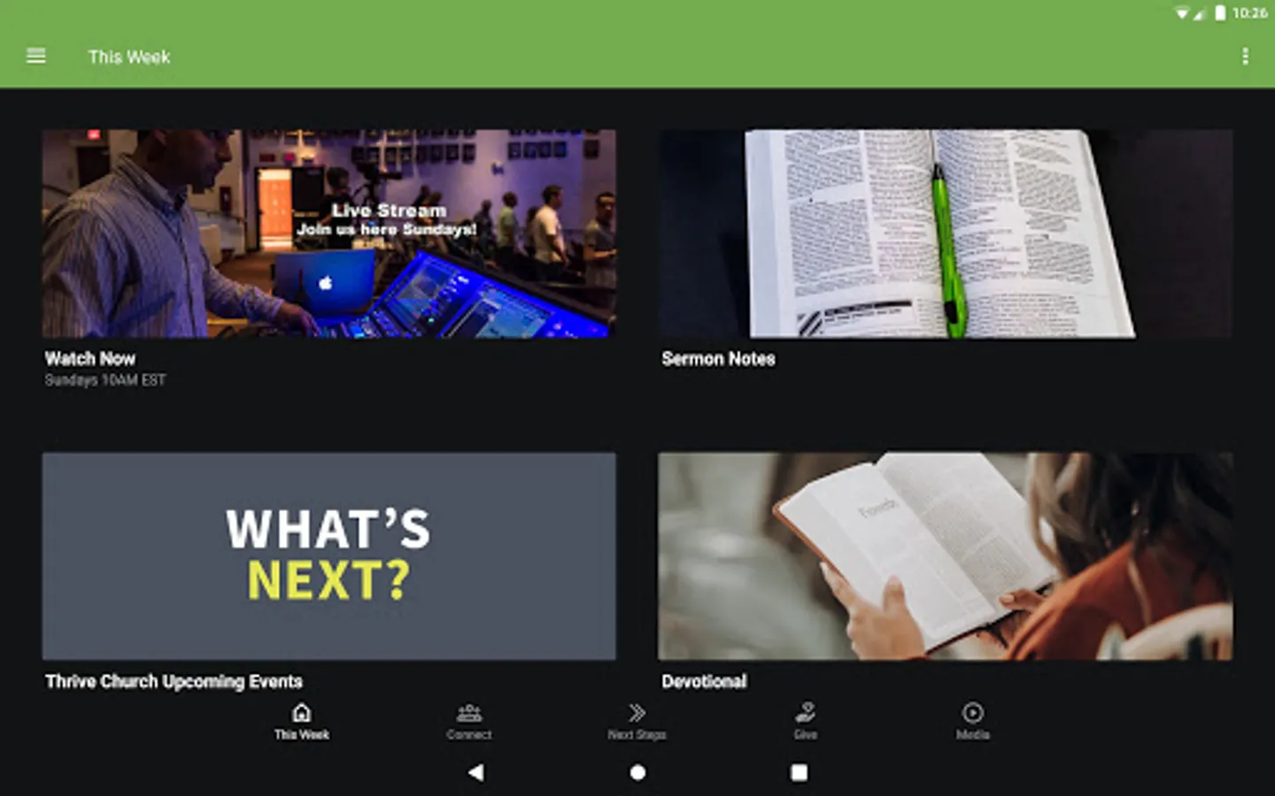Here you can check out Thrive's videos, sermons, events, devotional, in-app bible, and much more! You can give online through the app, contact a Pastor or Dream Team Member, and visit many other in-app resources. After you've downloaded and enjoyed our newly revised app, you can share it with your friends via Twitter, Facebook or email.