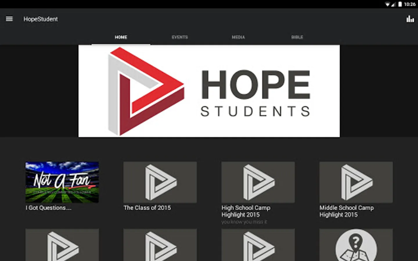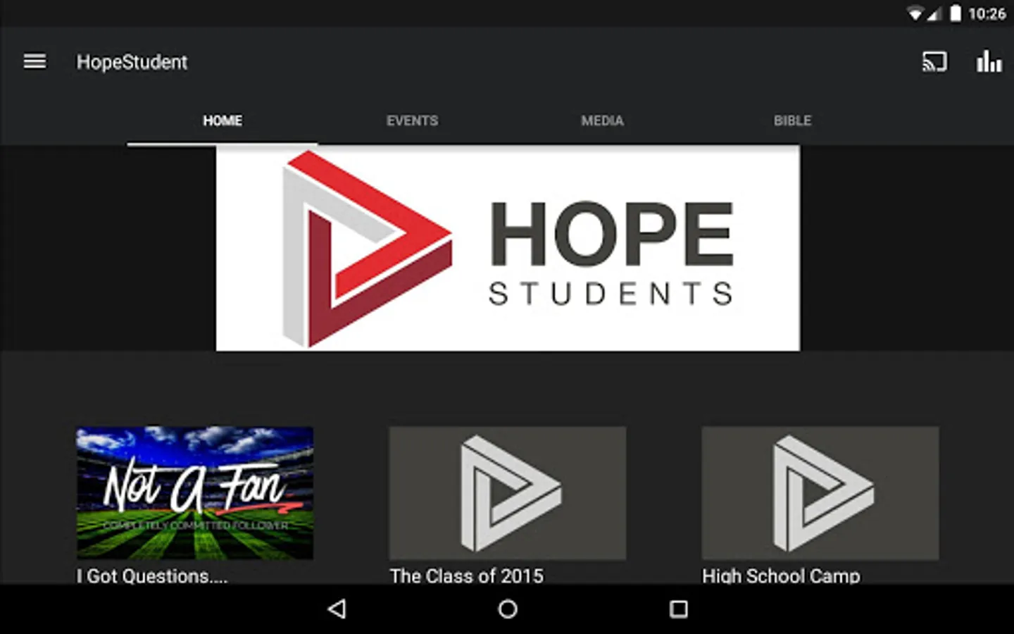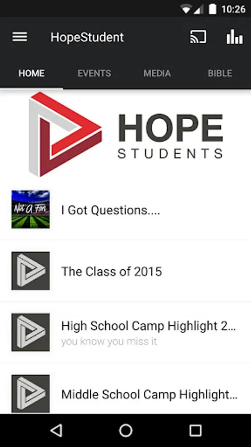 This is the official Hope Students app, for the student ministry out of Hope Church located in Las Vegas, NV.