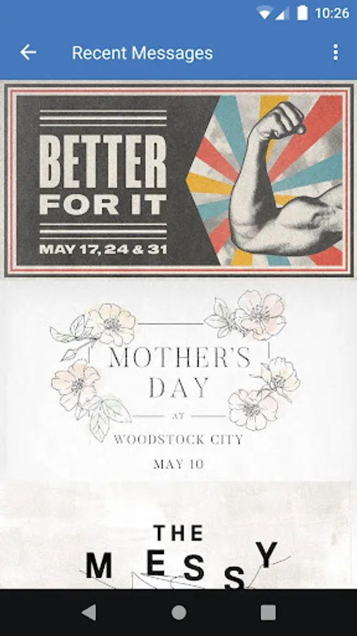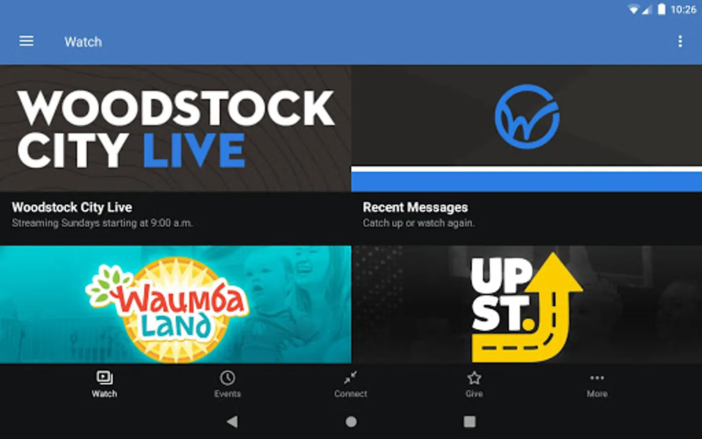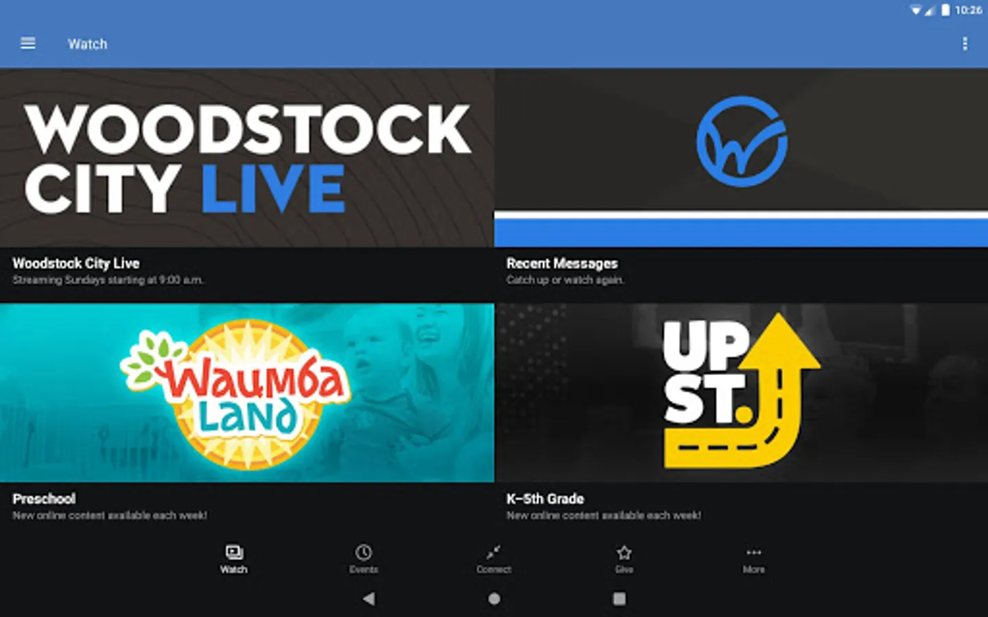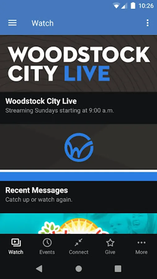 The Woodstock City Church App was created with the Subsplash App Platform.