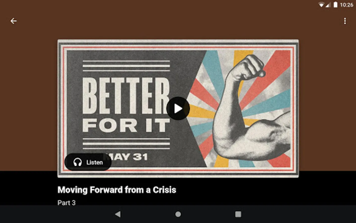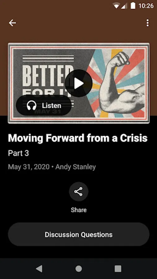 - Download, queue, and play audio-only versions of Sunday messages.