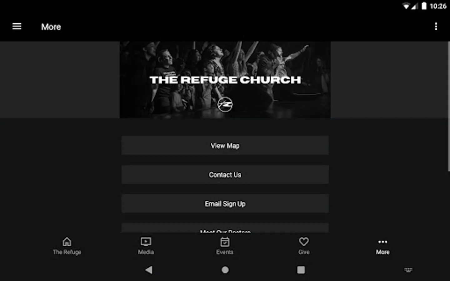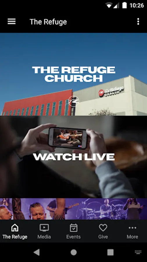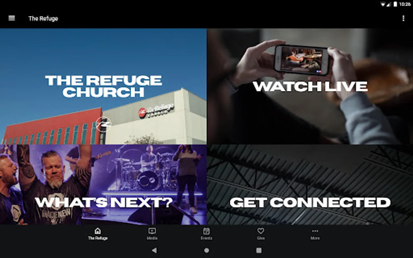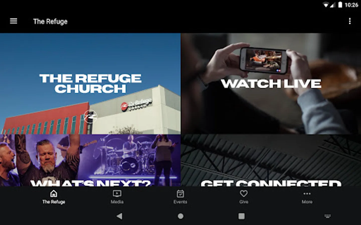 The Refuge mobile application was developed with the Subsplash App Platform.
