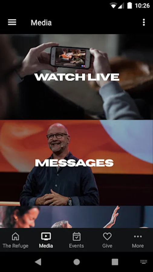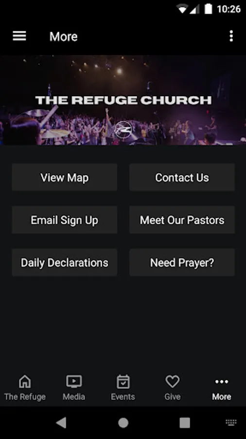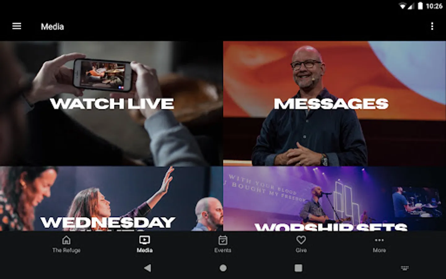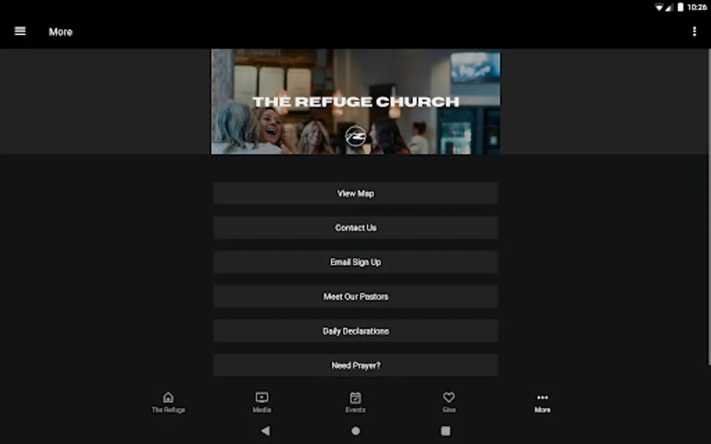 The Refuge mobile application was developed with the Subsplash App Platform.
