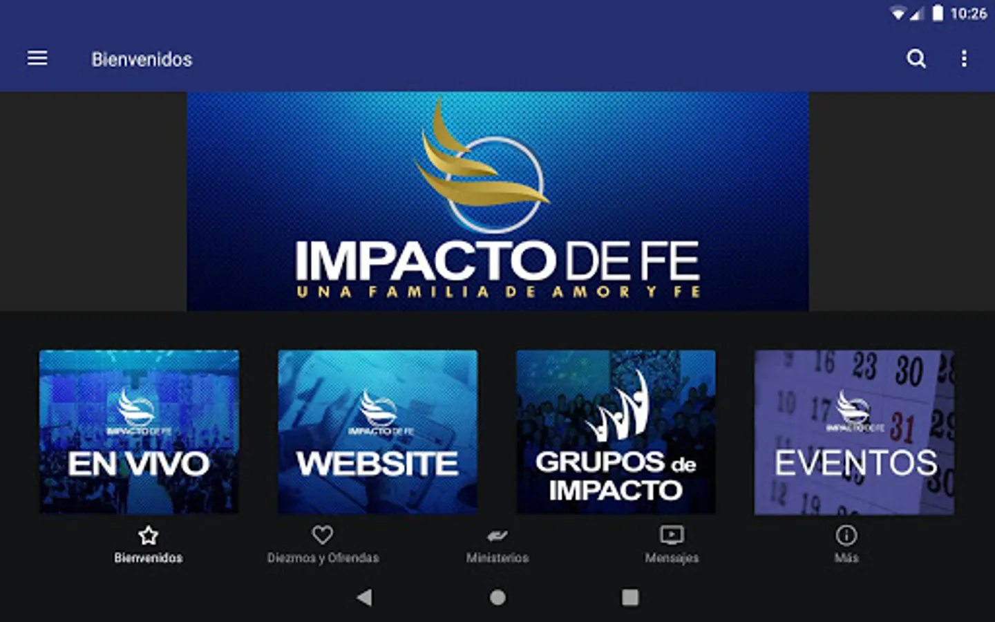 The official app of Impacto de Fe is the fastest and easiest way to connect with all things happening at Impacto de Fe. With this app you can watch and listen to sermons, give your tithe and offering, watch sermons live and much more!