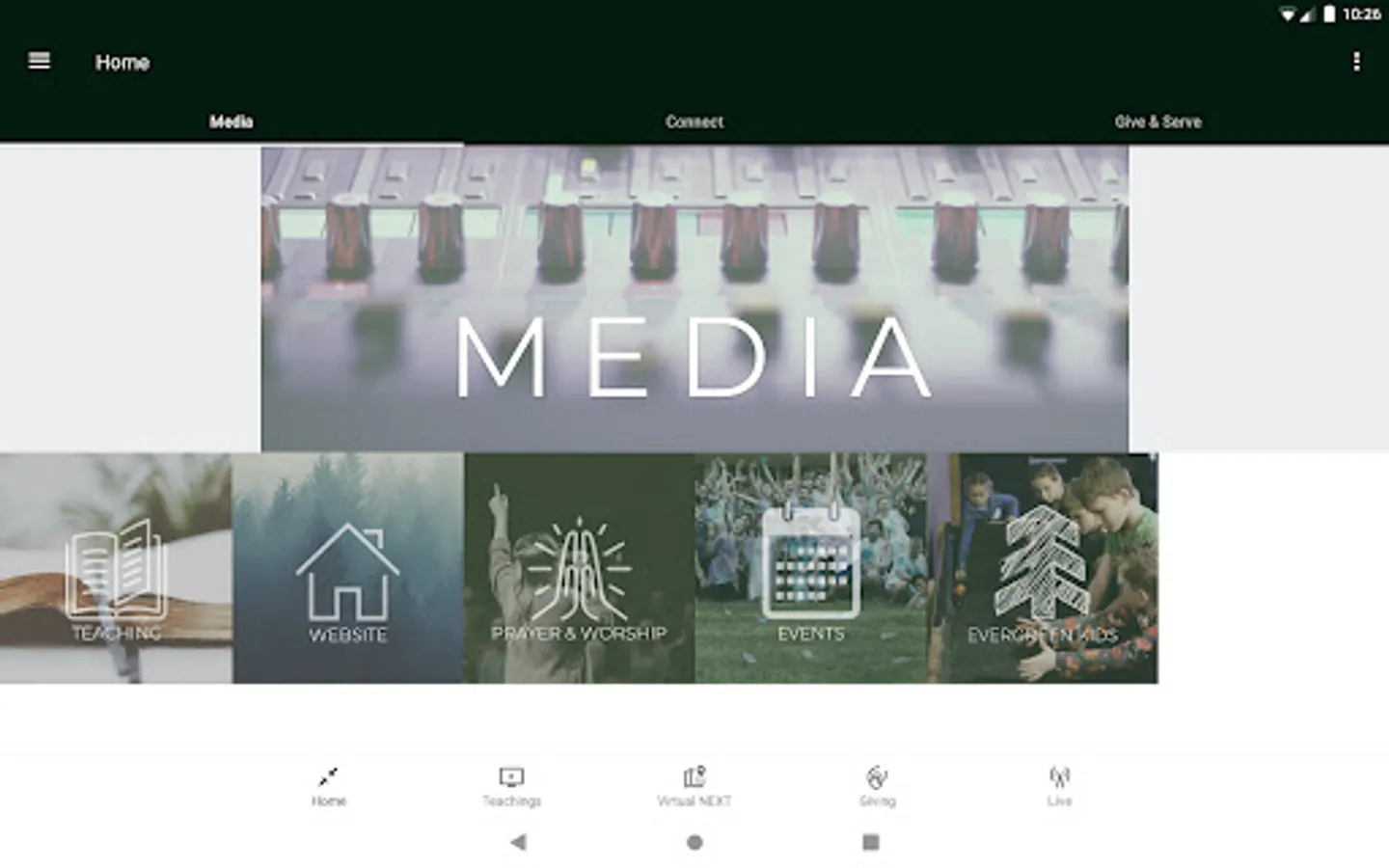 The Evergreen Christian Community App was created with the Subsplash App Platform.