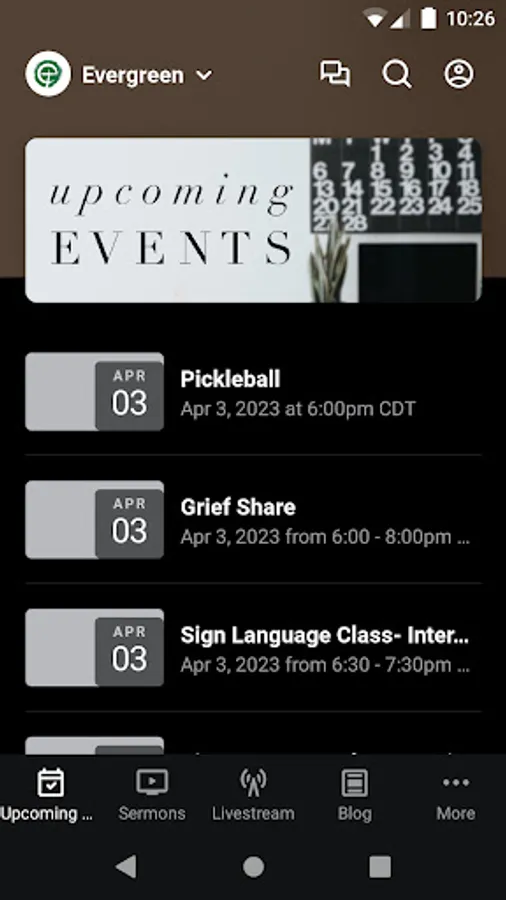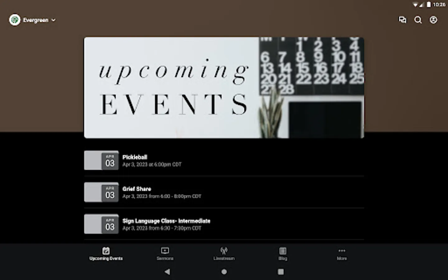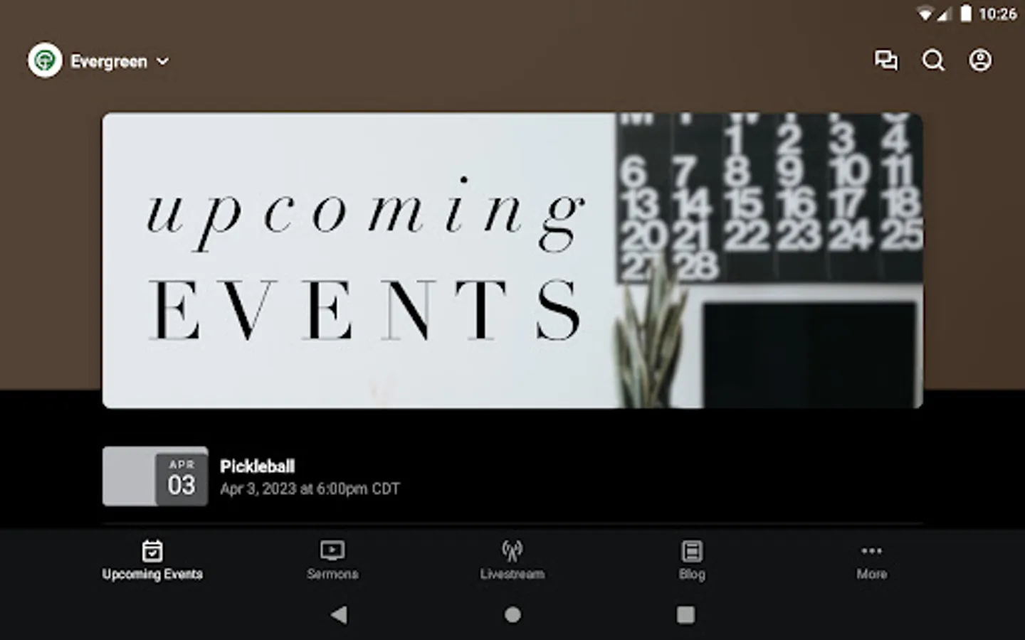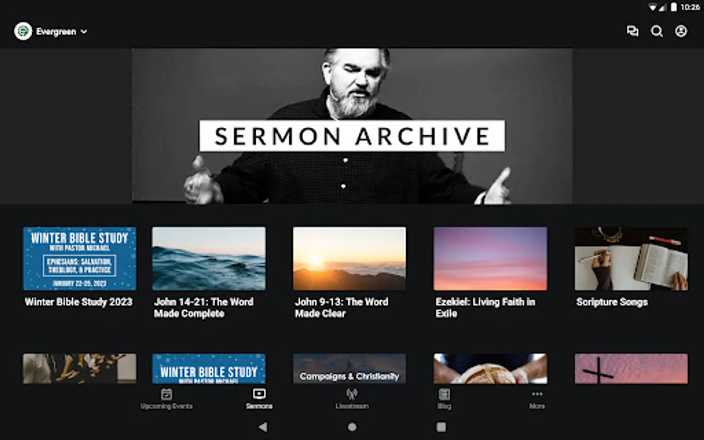 The Evergreen Church App was developed with the Subsplash App Platform.