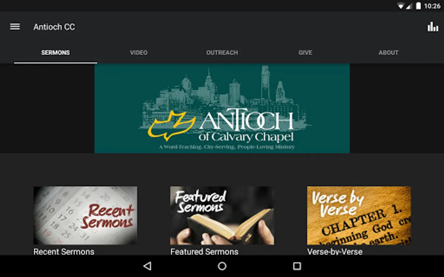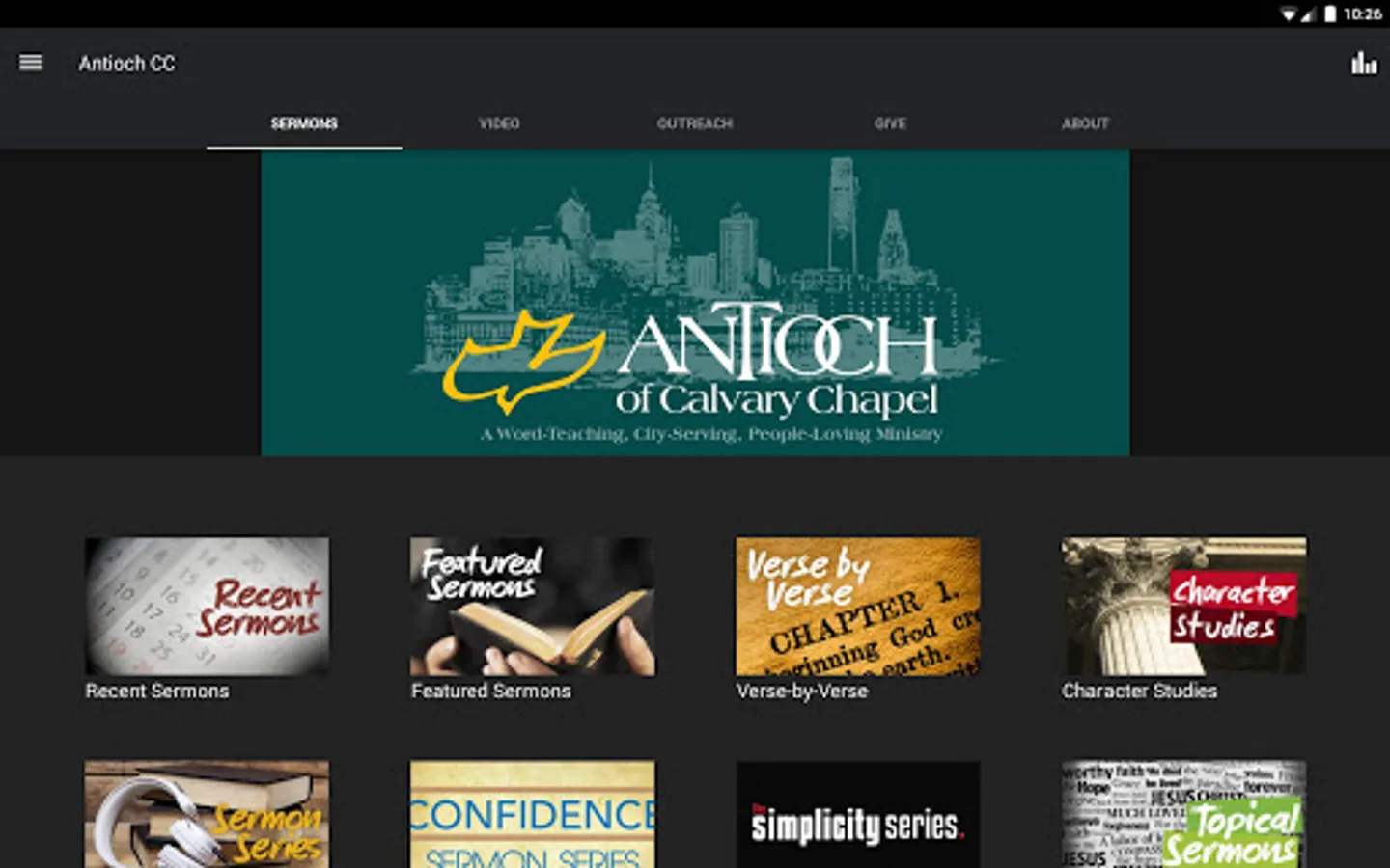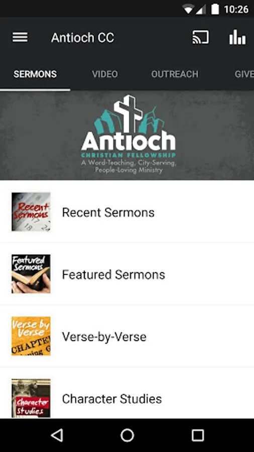 The Antioch Christian Fellowship app was developed with the Subsplash App Platform.
