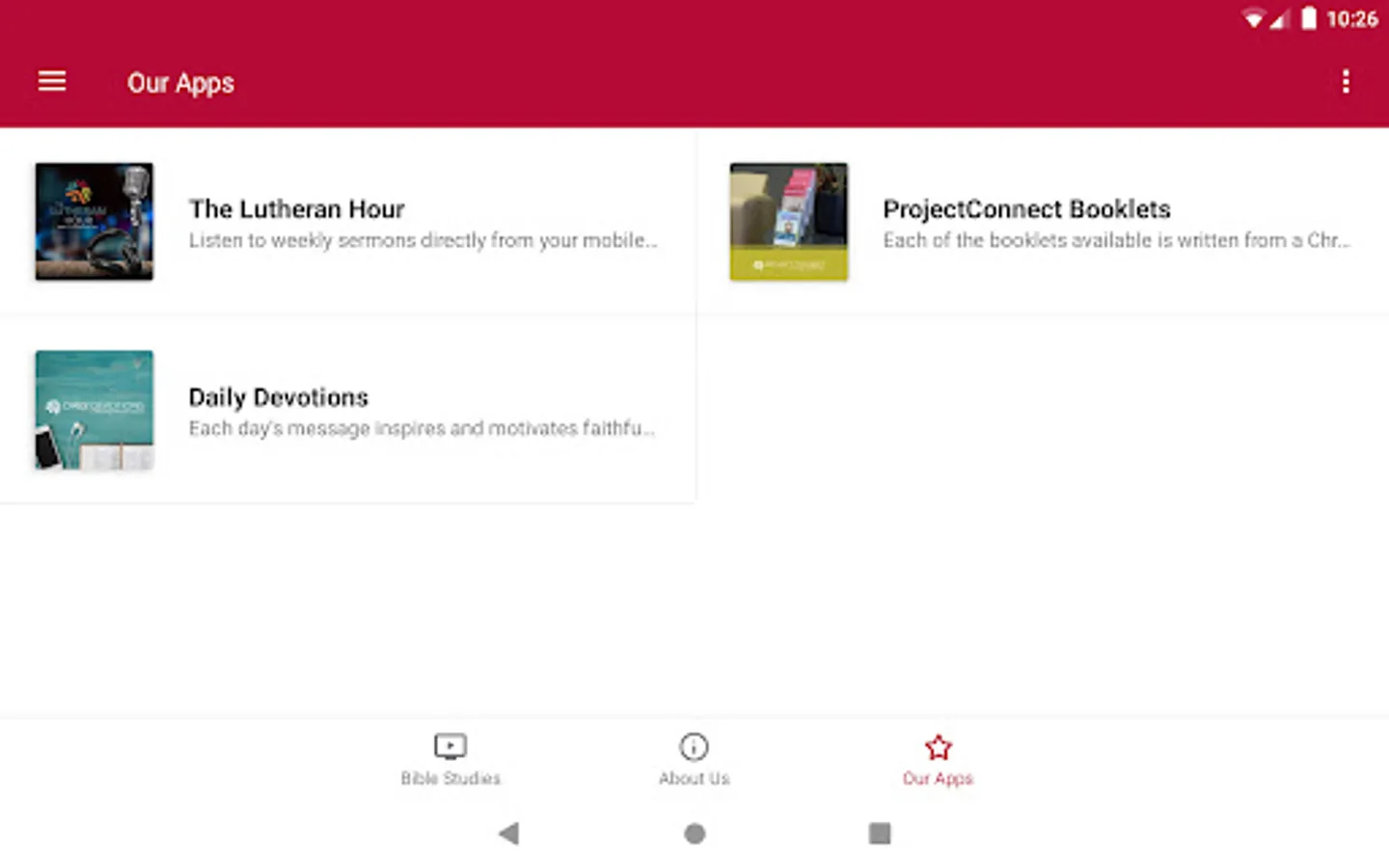 Take a minute to download the free LHM Video Bible Studies app from Lutheran Hour Ministries! It gives you immediate access to award-winning, original Bible studies and resources with streaming video, study guides, downloads, and more—the LHM Video Bible Studies app puts a host of Christ-centered tools at your fingertips.