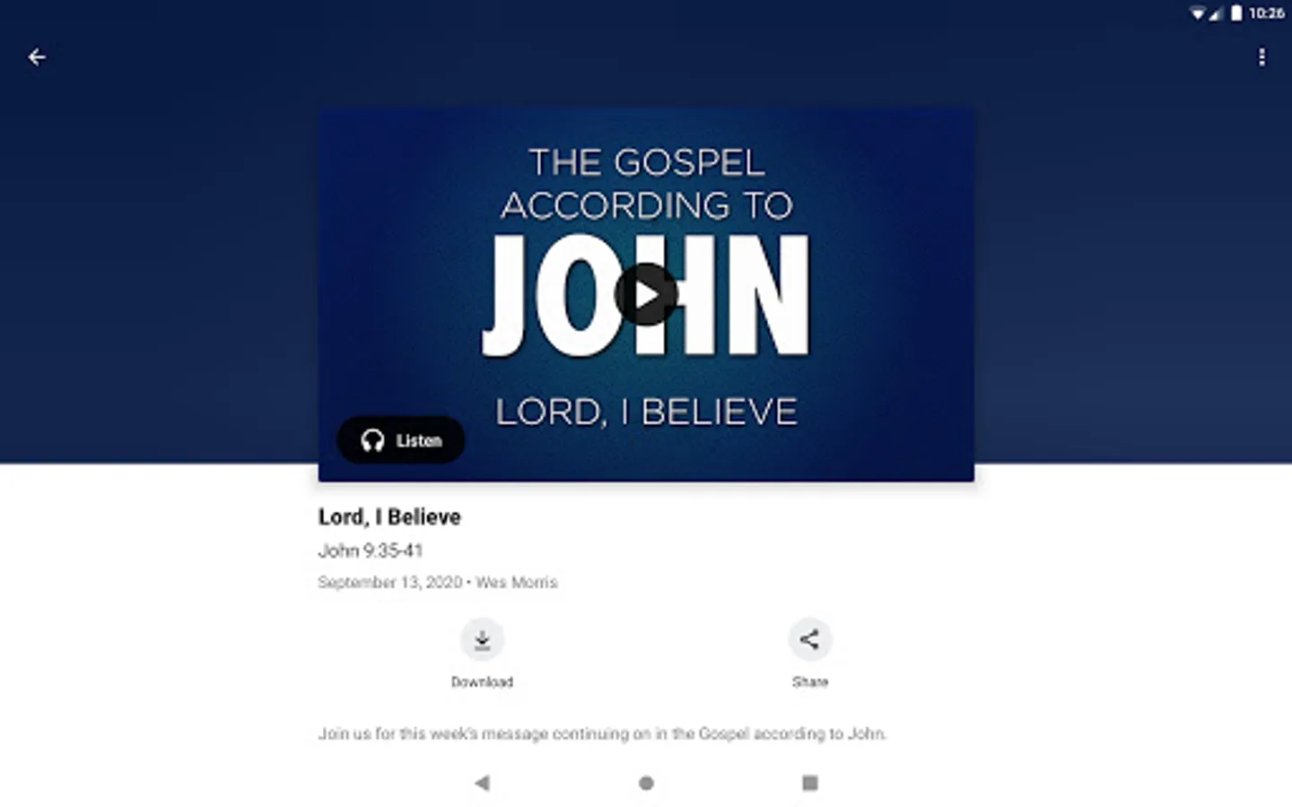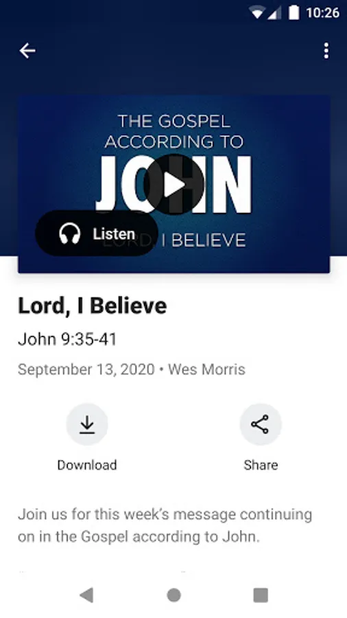 Download Feature: You are able to download audio sermon files to your device so you can listen to them when offline.