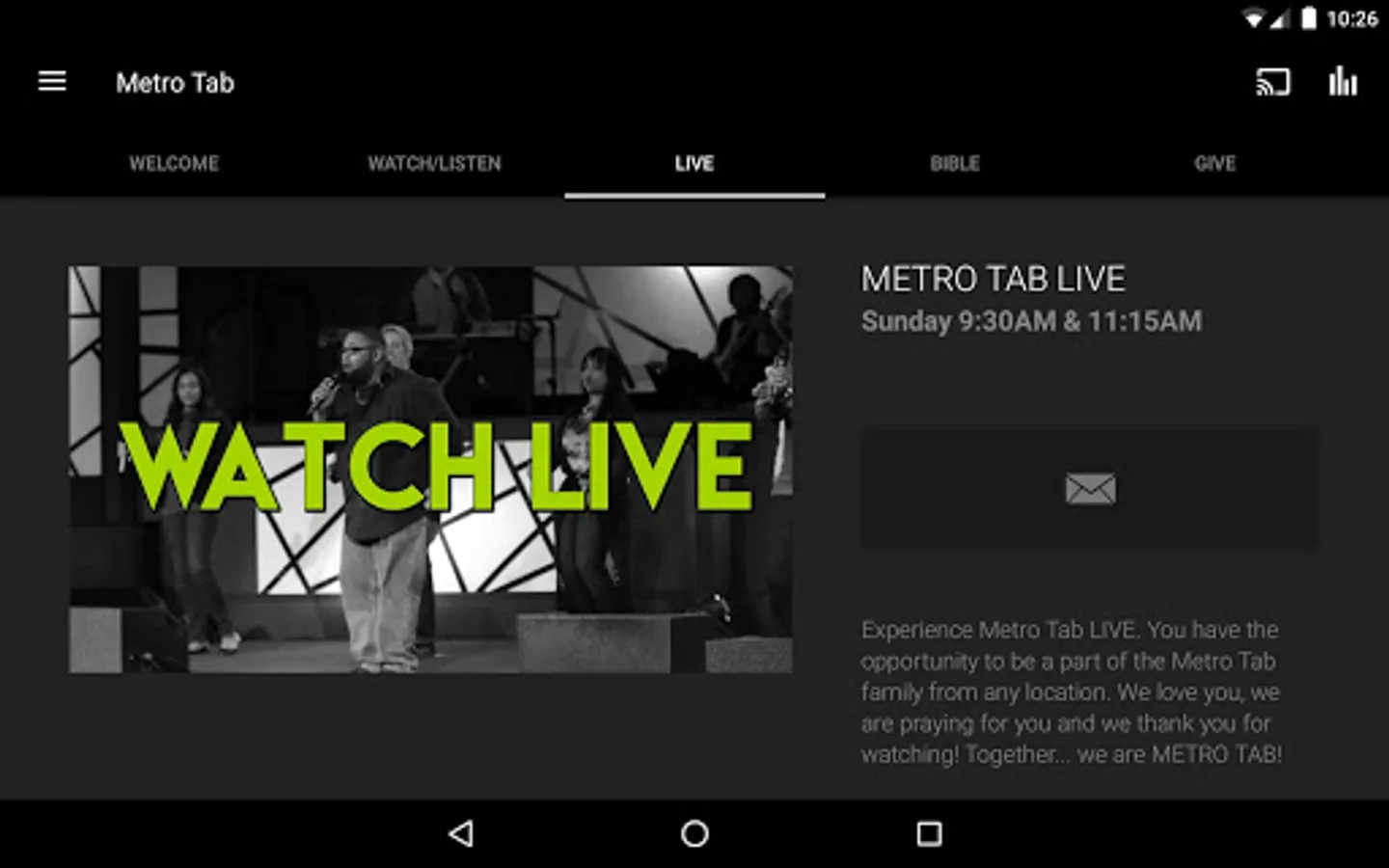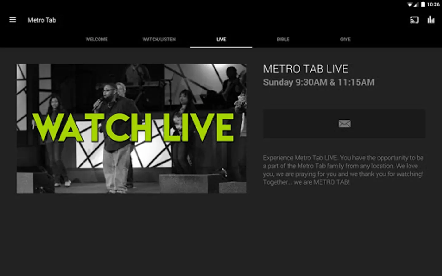 Welcome to the official Metro Tab Church application.