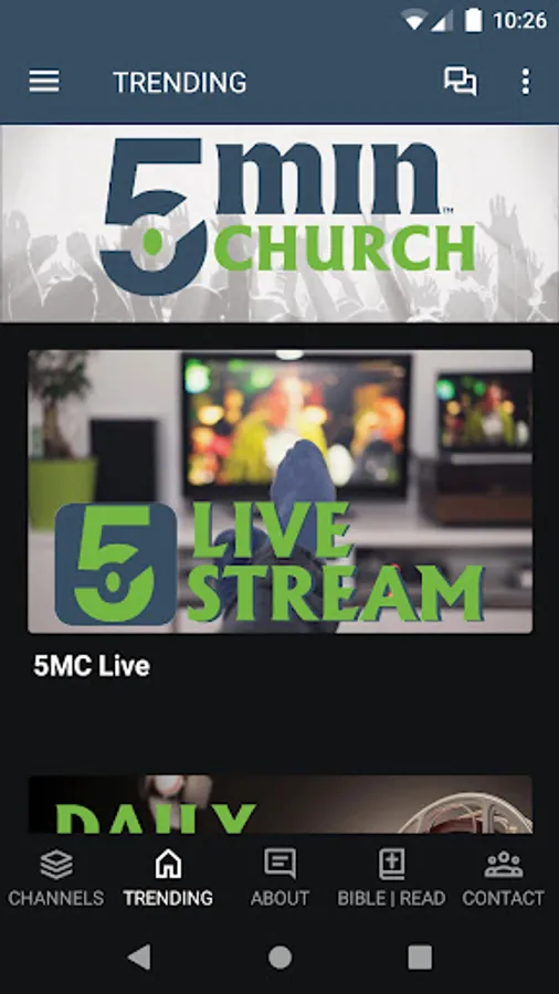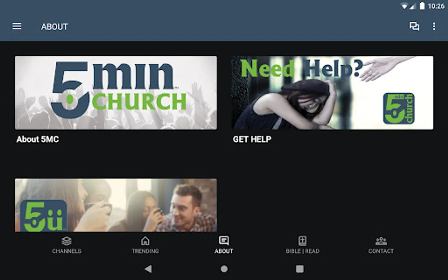 5MinChurch is a Church without walls! A FREE DAILY APP that is a real church in the palm of your hands. Complete with community, daily videos, music, blogs, Bible study, Sports, men/women devotionals, sermons and so much more... all new and fresh everyday. 5MinChurch also has a 24/7 help available for people in need. As the fastest growing church community and tool, we are now in all 50 states and 86 countries. Let's face it most people have their phones with them 24/7 being the last thing they look at before they go to bed and the first thing they look at when they wake up. Today we live life at the ends of our fingertips so we believe church should be there too. 5MinChurch is a great tool for churches, small groups, or people that want daily encouragement. See our website for more info www.5minchurch.com