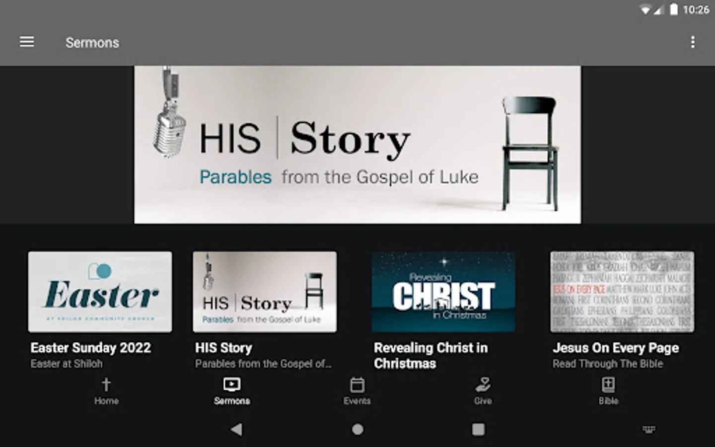 The Shiloh Community Church app was developed with the Subsplash App Platform.
