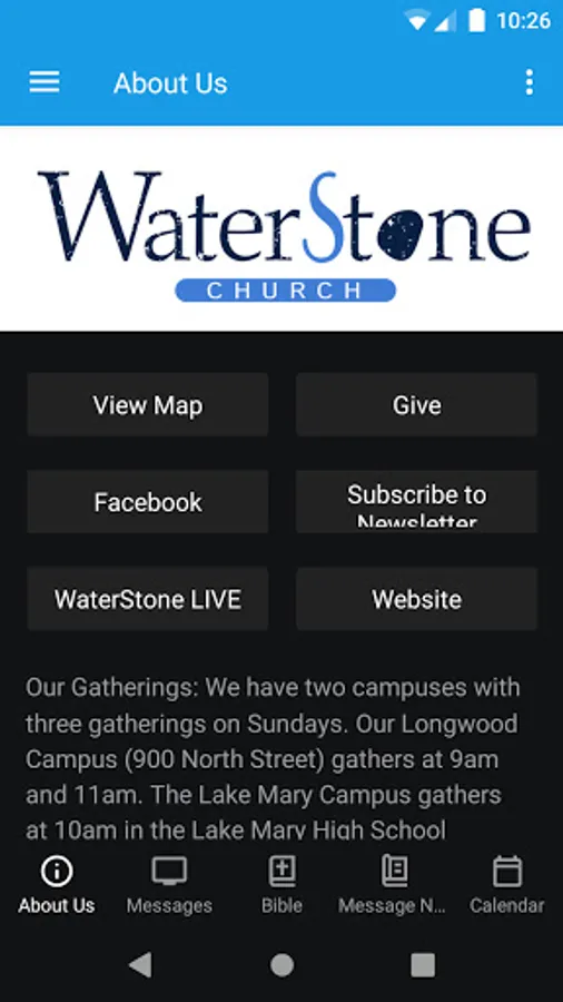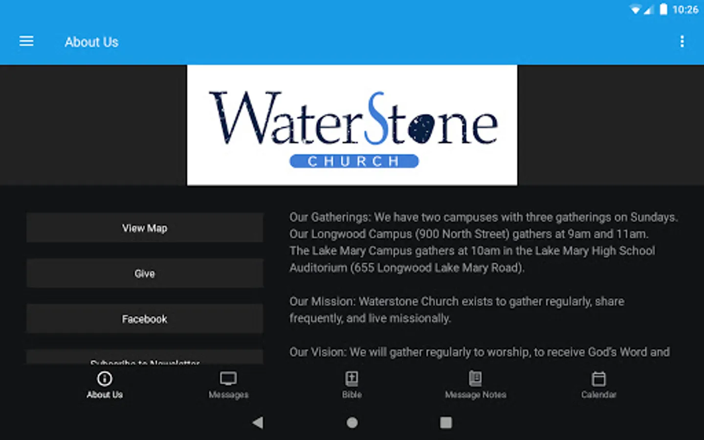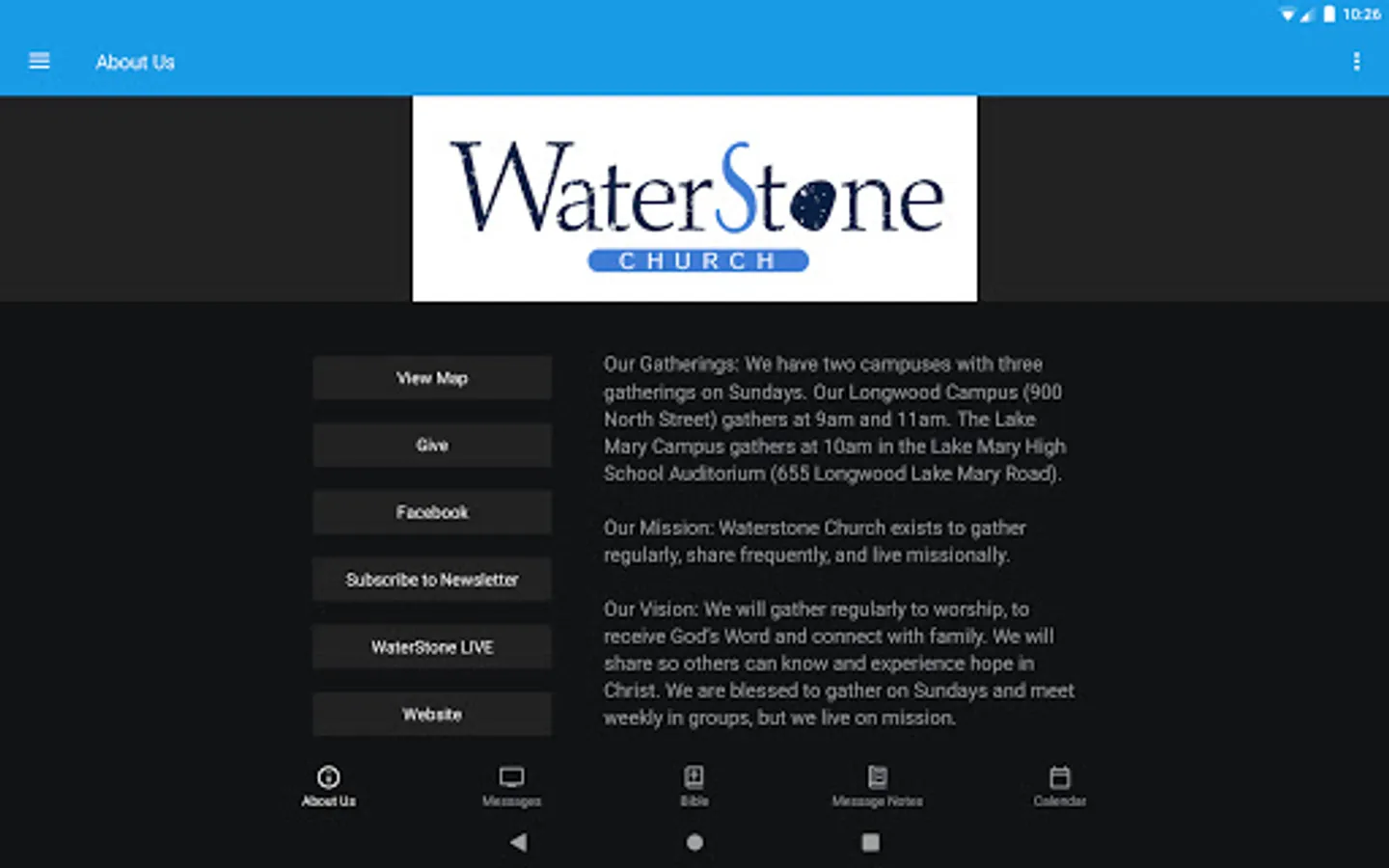 The WaterStone Church app was developed with the Subsplash App Platform.