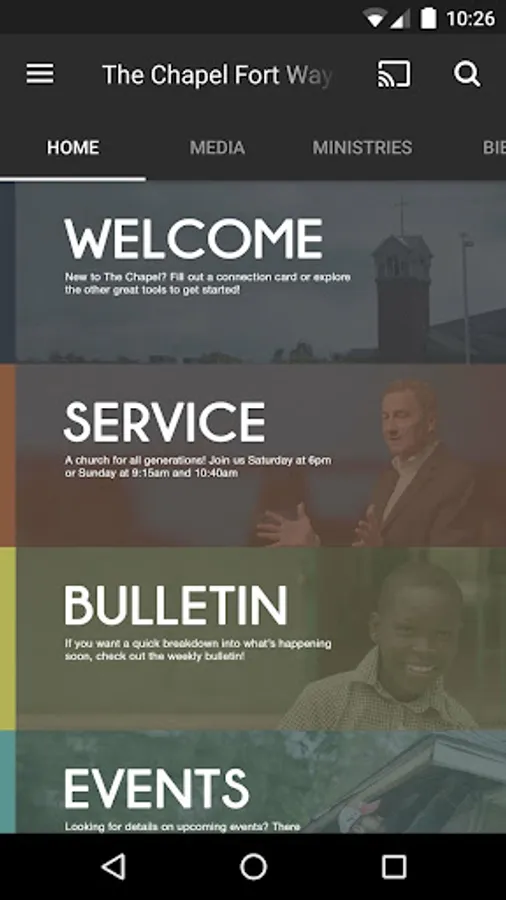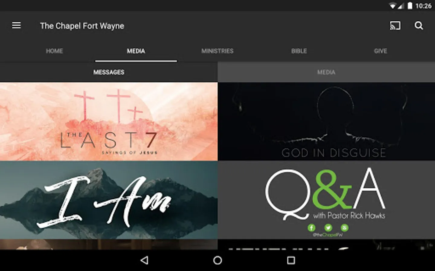 Welcome to The Chapel's official app! You can instantly watch or listen to any weekend message on the go! Never miss a Chapel event and customize your notifications to fit what areas most interest you. Also, the app highlights featured videos, weekly devotionals, Bible reading plans, and much more!