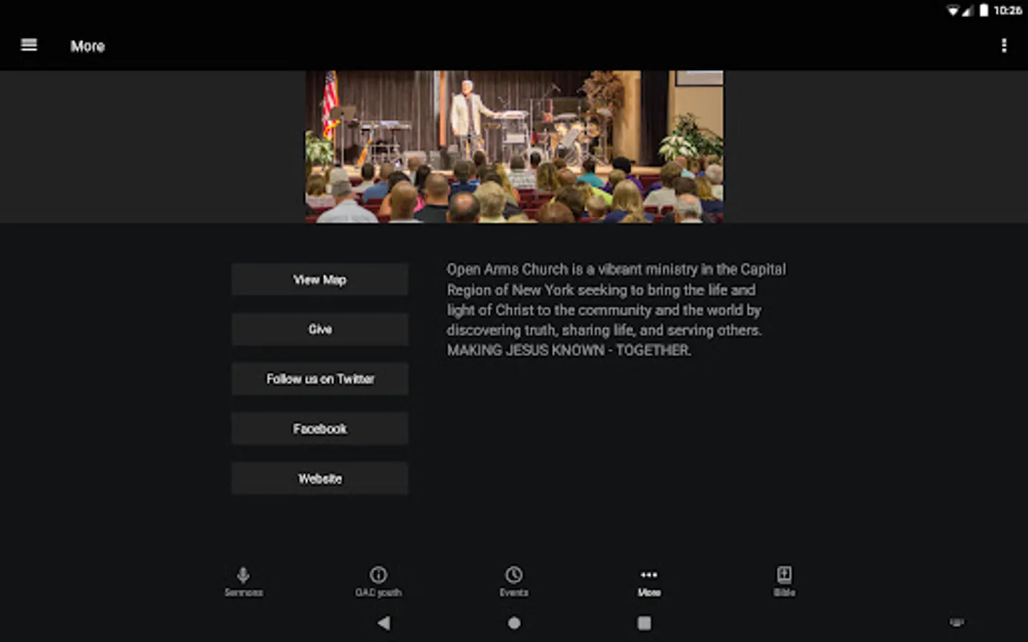 The Open Arms Church App was developed with the Subsplash App Platform.