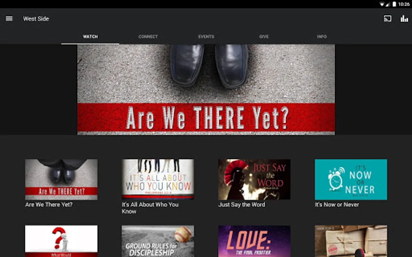 The West Side Community Church app was developed with the Subsplash App Platform.