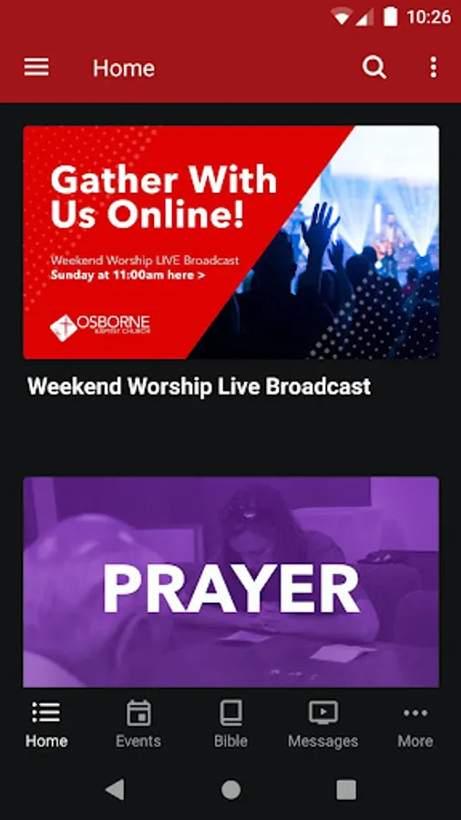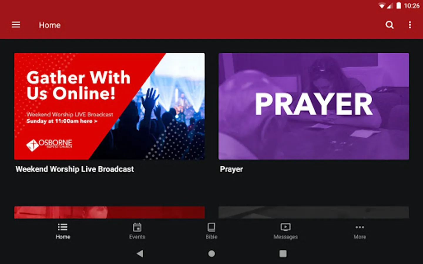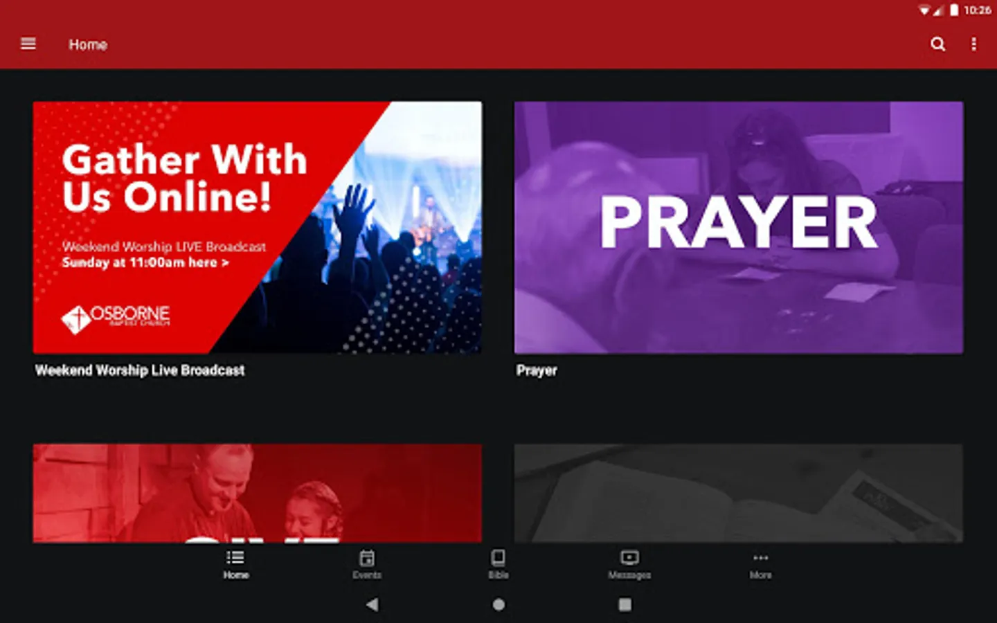 The Osborne Baptist Church App was created with the Subsplash App Platform.