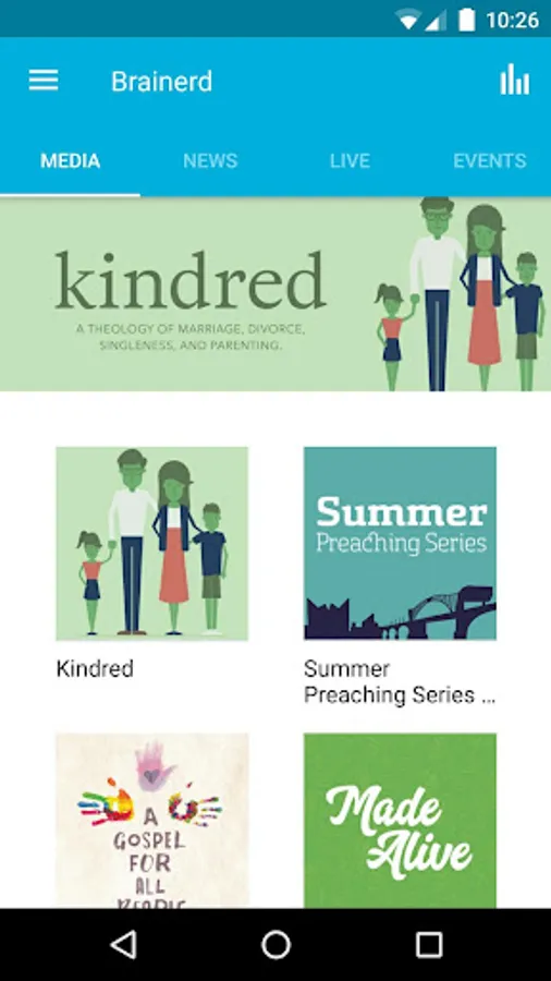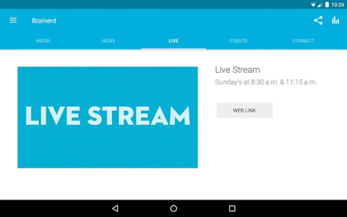 The Brainerd Baptist Church app was developed with Subsplash App Platform.