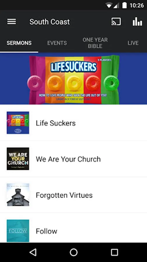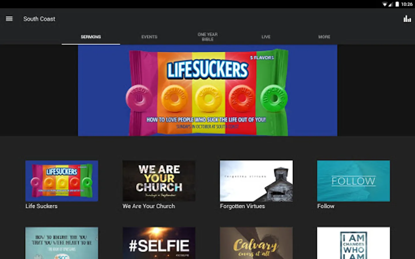 At South Coast, we exist to reach people with the life-giving message of Jesus that they may become fully devoted followers of Christ. This app provides access to life-changing audio and video sermons, relevant information about service times and small groups, and a way to share content with your friends via Twitter, Facebook, and email.