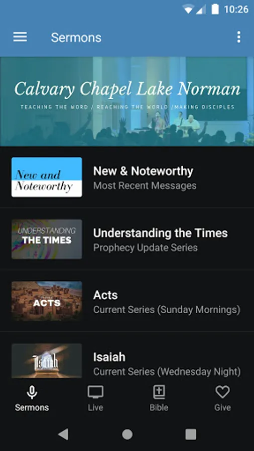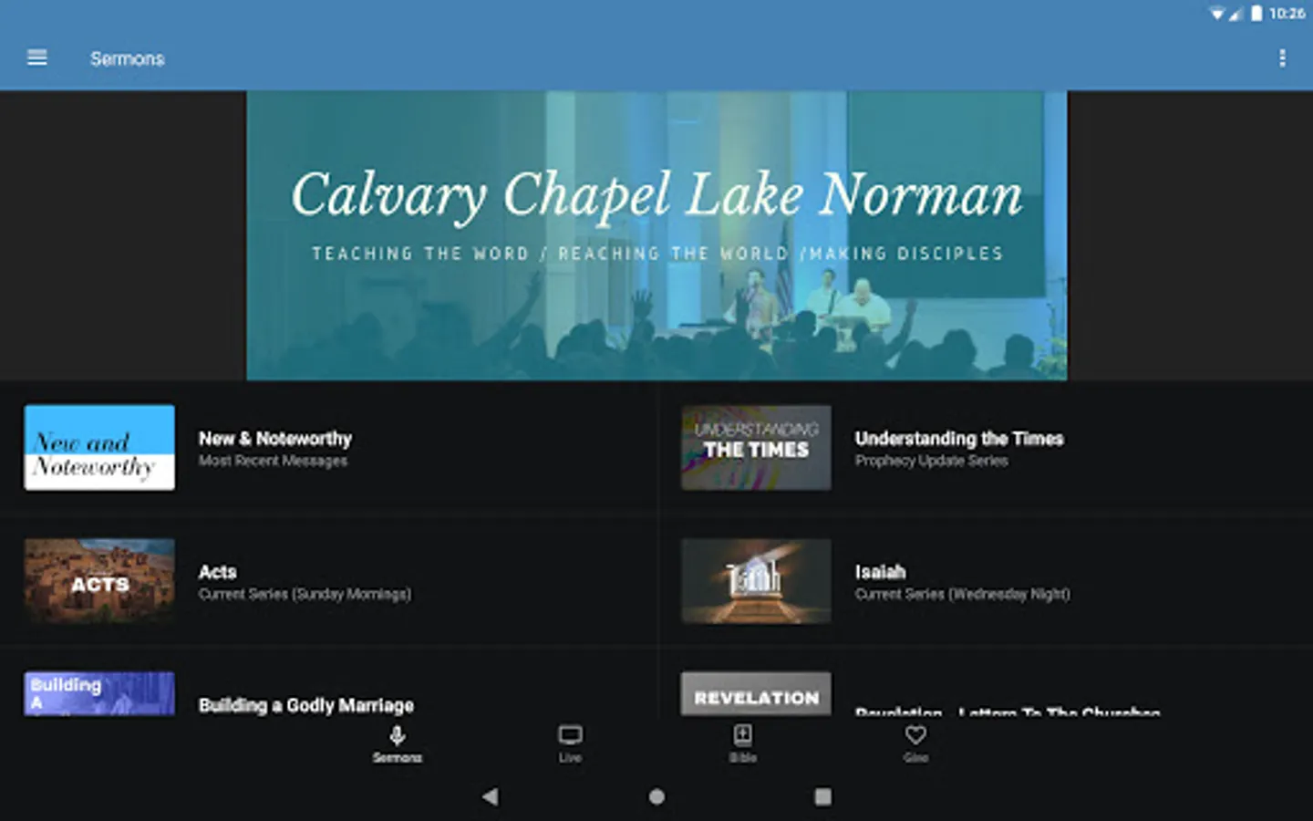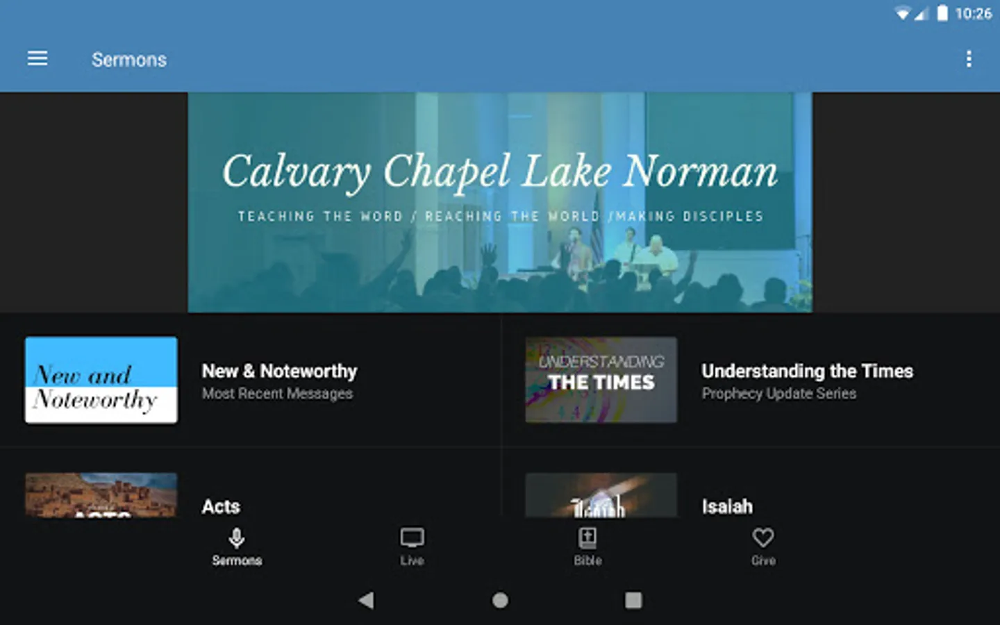 The Calvary Chapel Lake Norman app was developed with the Subsplash App Platform.