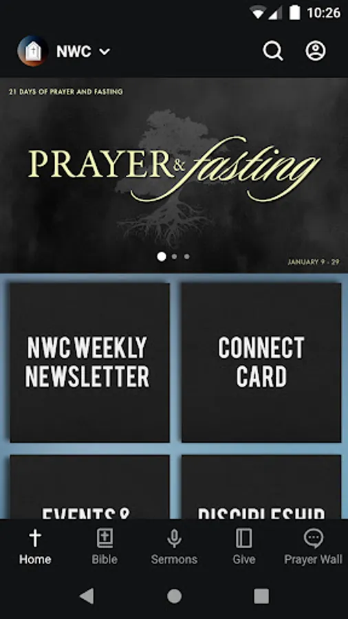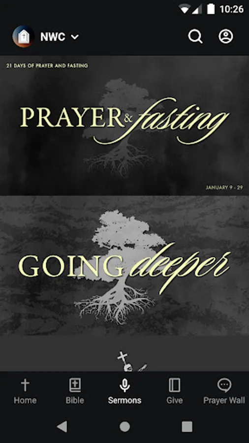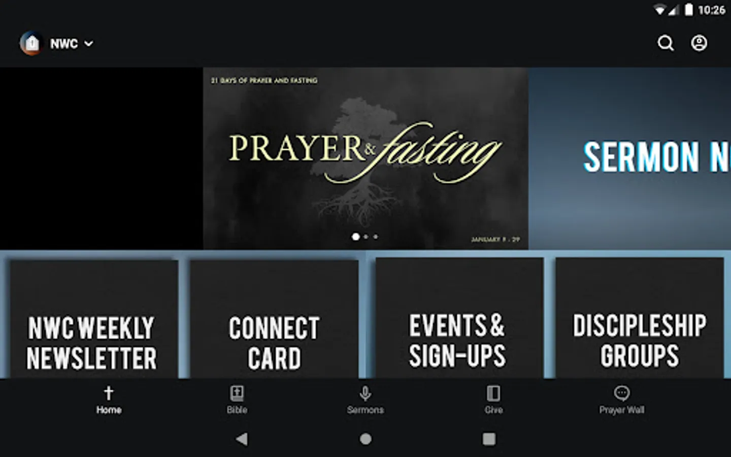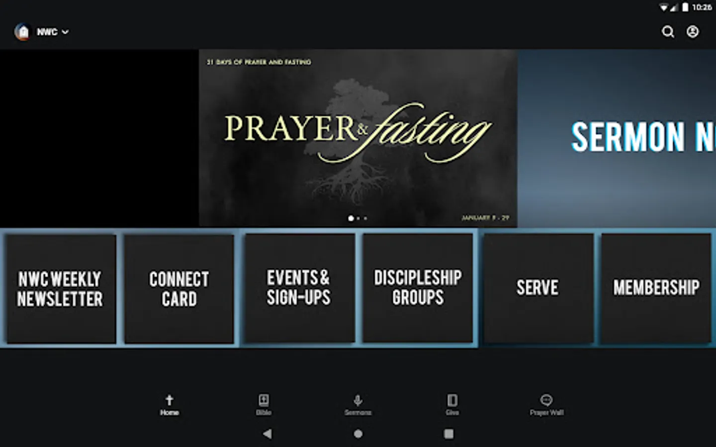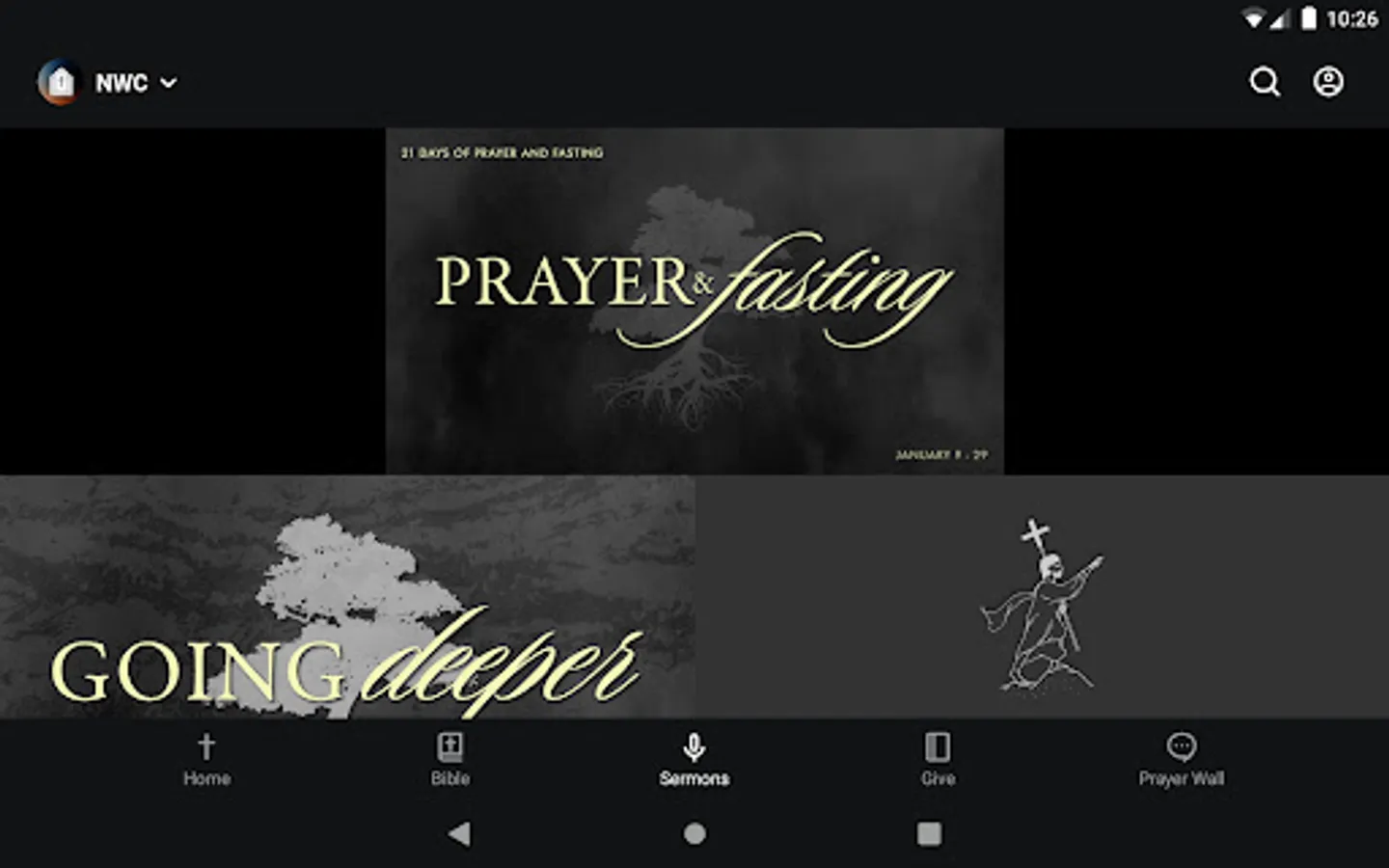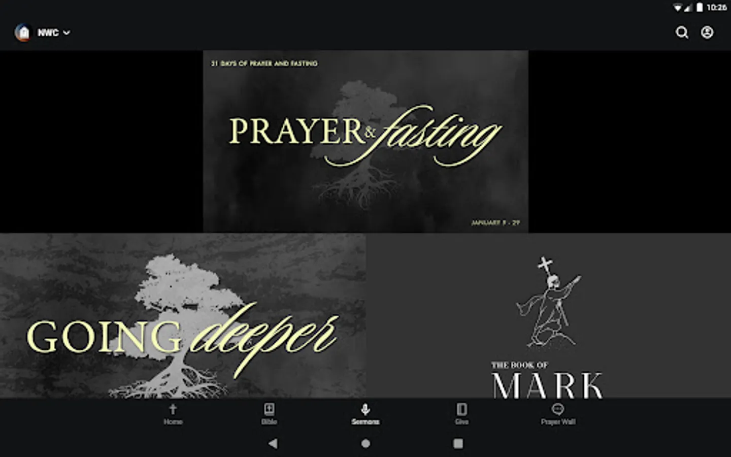 The NWCapp exists to provide sermons and resources for discipleship and growth. Use the app to follow along with the daily Bible reading plan, watch and share sermons, take notes, pray for family and friends, give, and stay up to date on all things NWC!