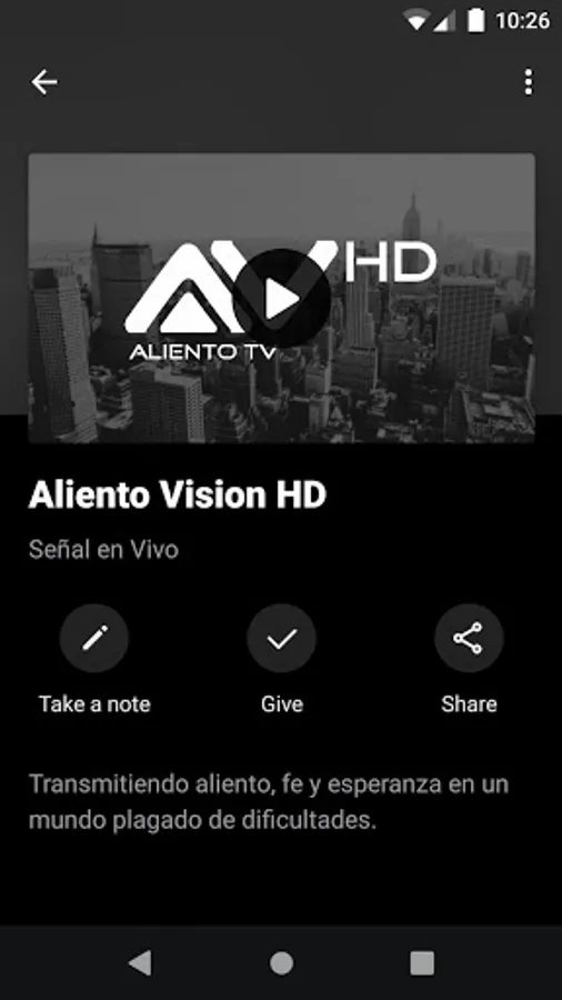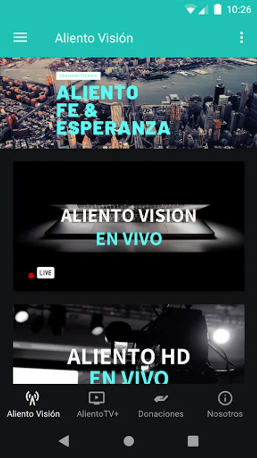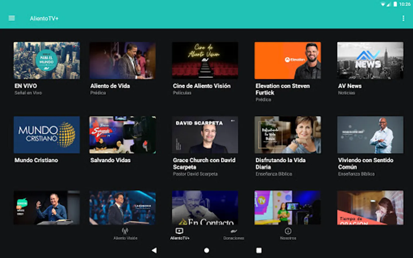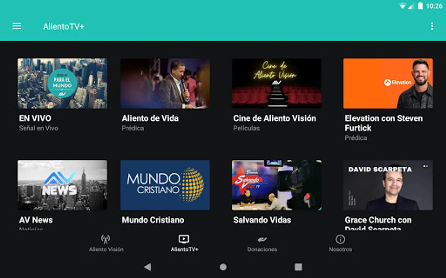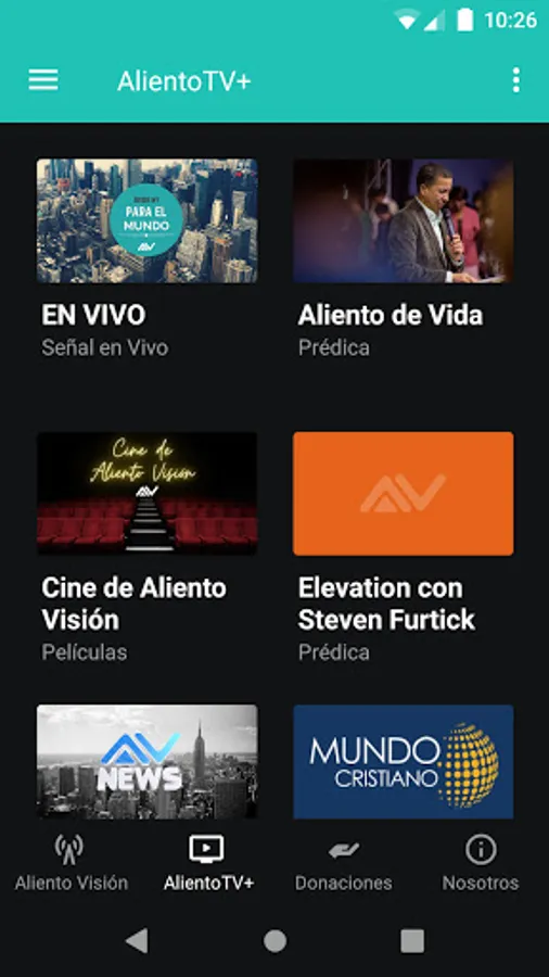 The Aliento Vision TV Network App was created with the Subsplash App Platform.