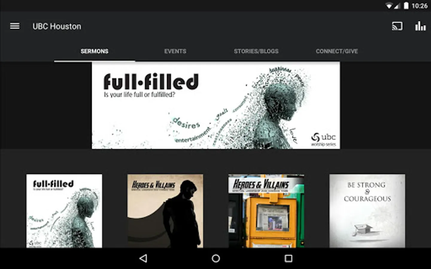 The UBC Houston App was created with the Subsplash App Platform.