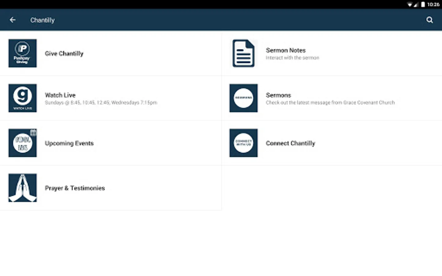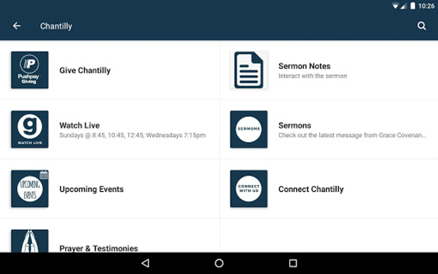 The Grace Covenant Church App was developed with the Subsplash App Platform.