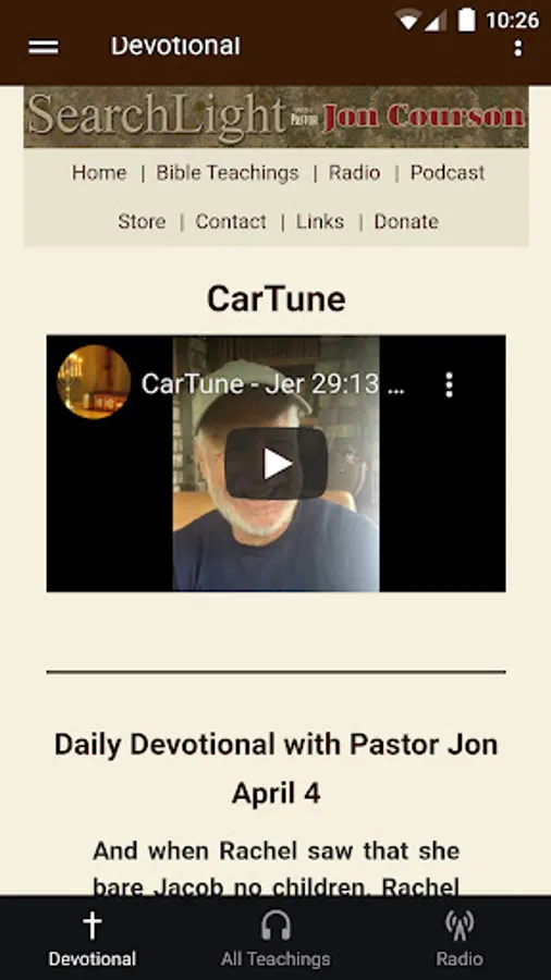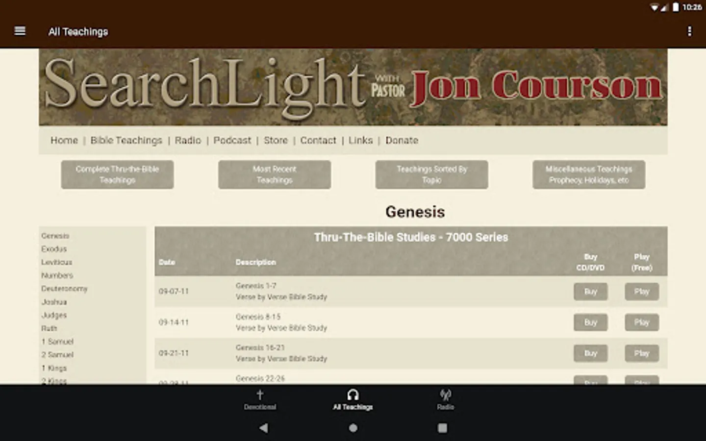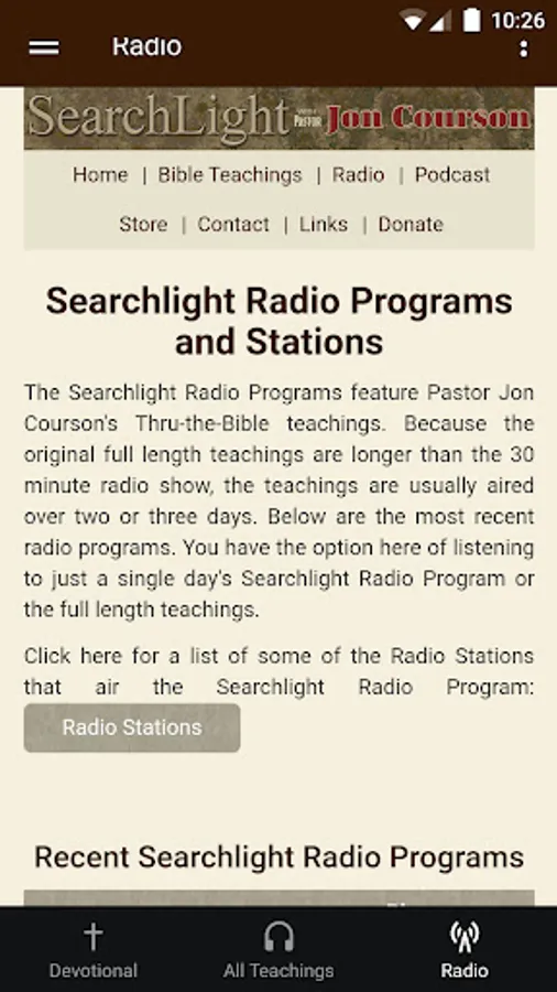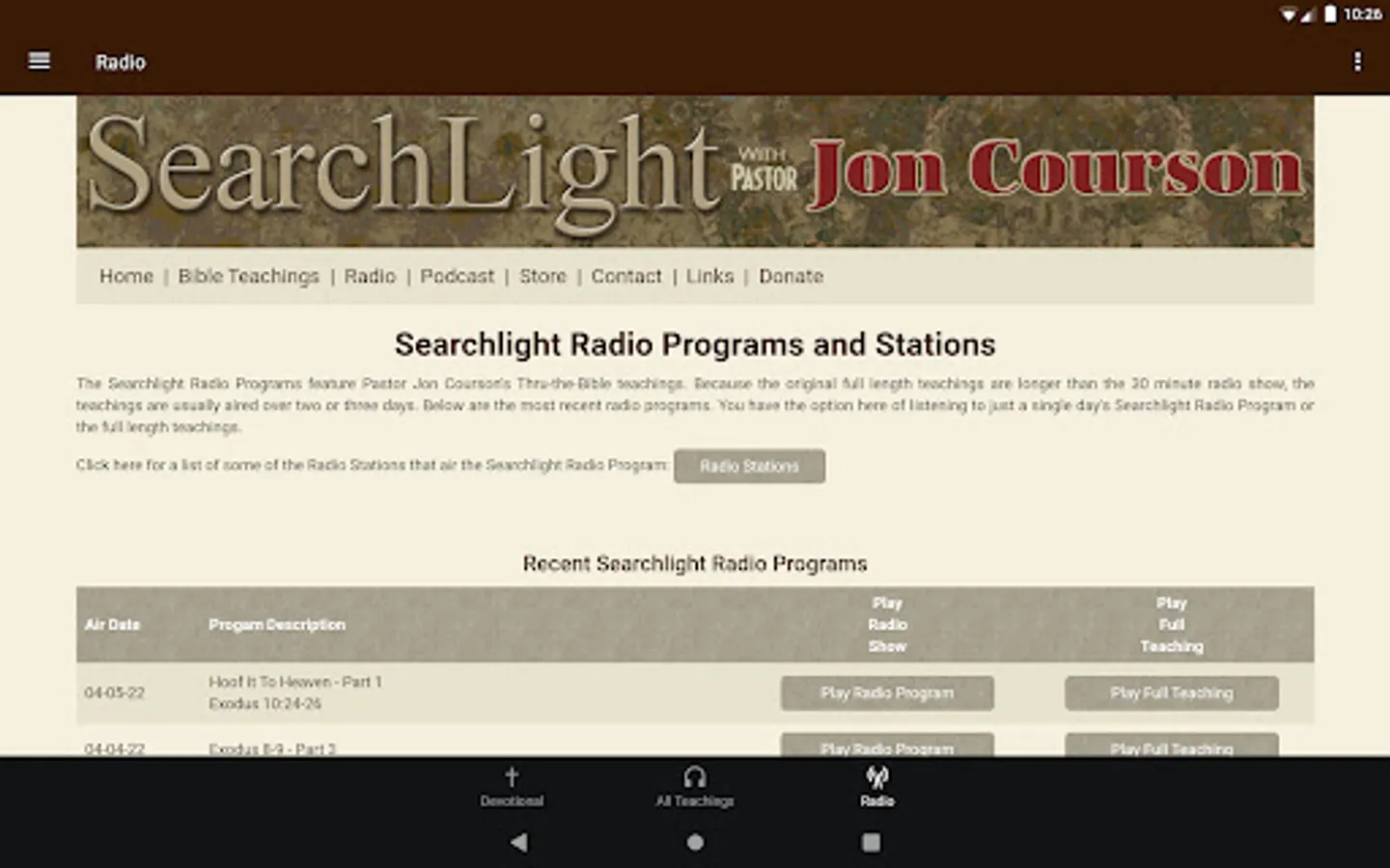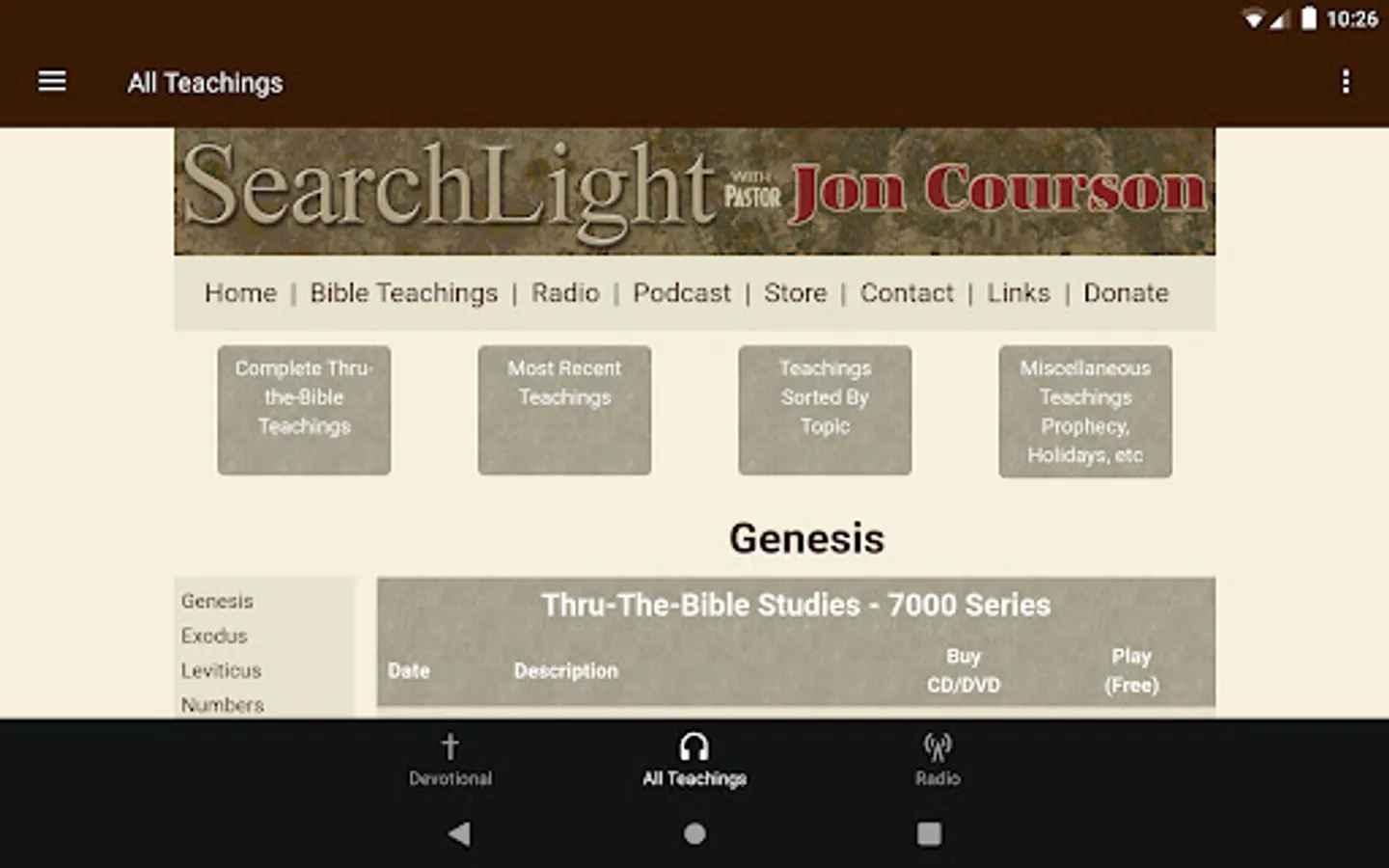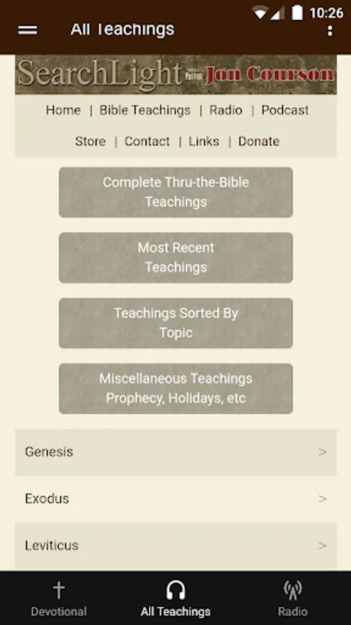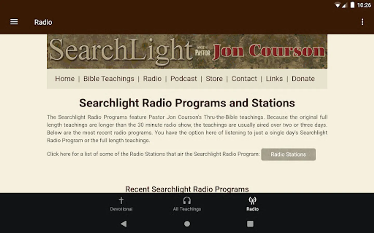 With this app, you can read Pastor Jon Courson’s daily devotional, get video or audio of any of his Thru-the-Bible teachings or listen to the daily Searchlight radio program.
