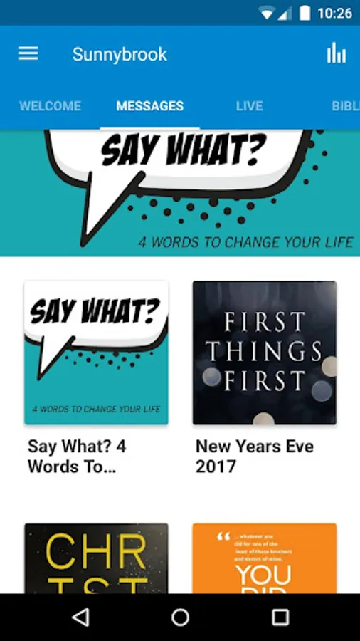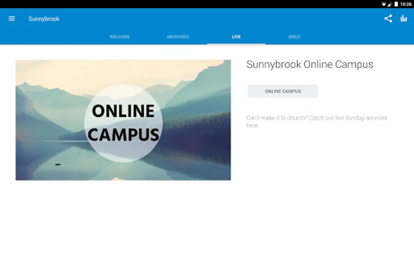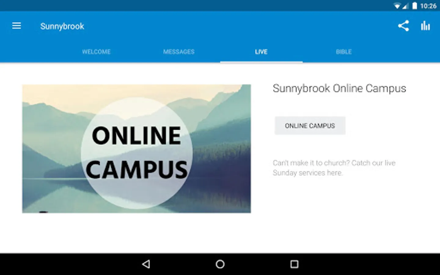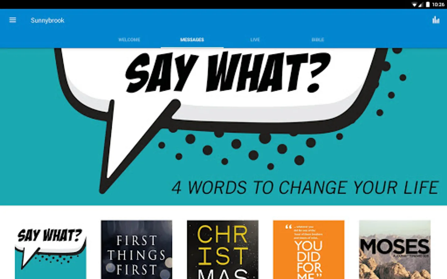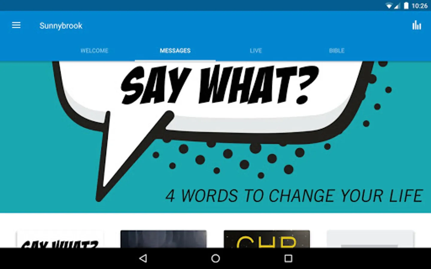 With the Sunnybrook App, you can watch or listen to sermons on the go, stay up to date on our latest events, enjoy an interactive Sunday morning experience and share it all via Facebook, Twitter and email.