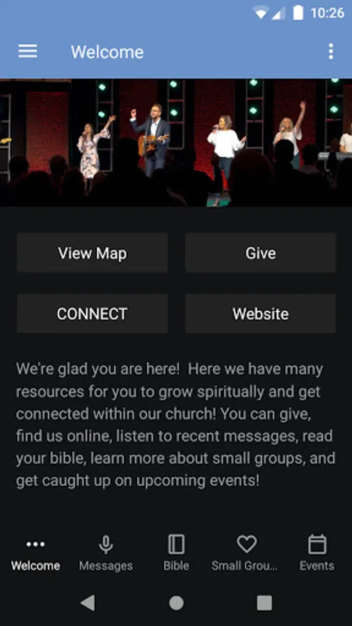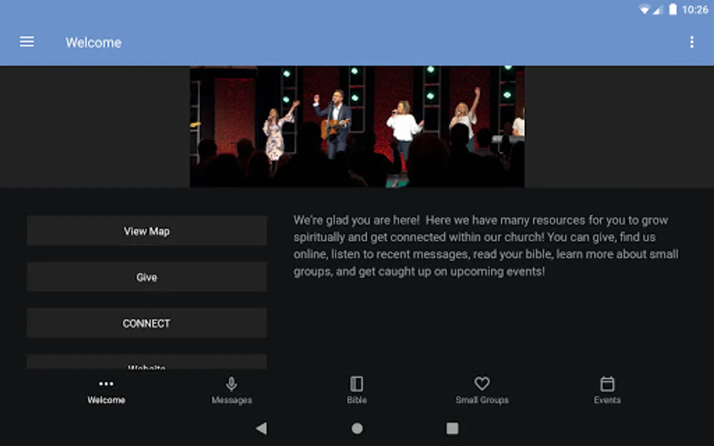 Welcome! We are glad you stopped by! Our mobile app is our one stop place to help you grow and stay connected within our Church! You can catch up on recent messages, take notes, keep up with our yearly reading plan, learn more about small groups, and track upcoming events!