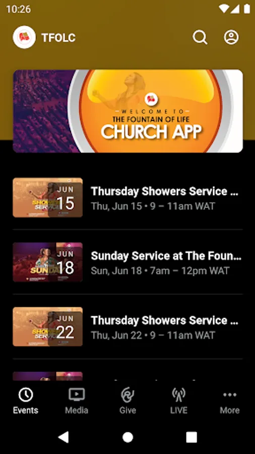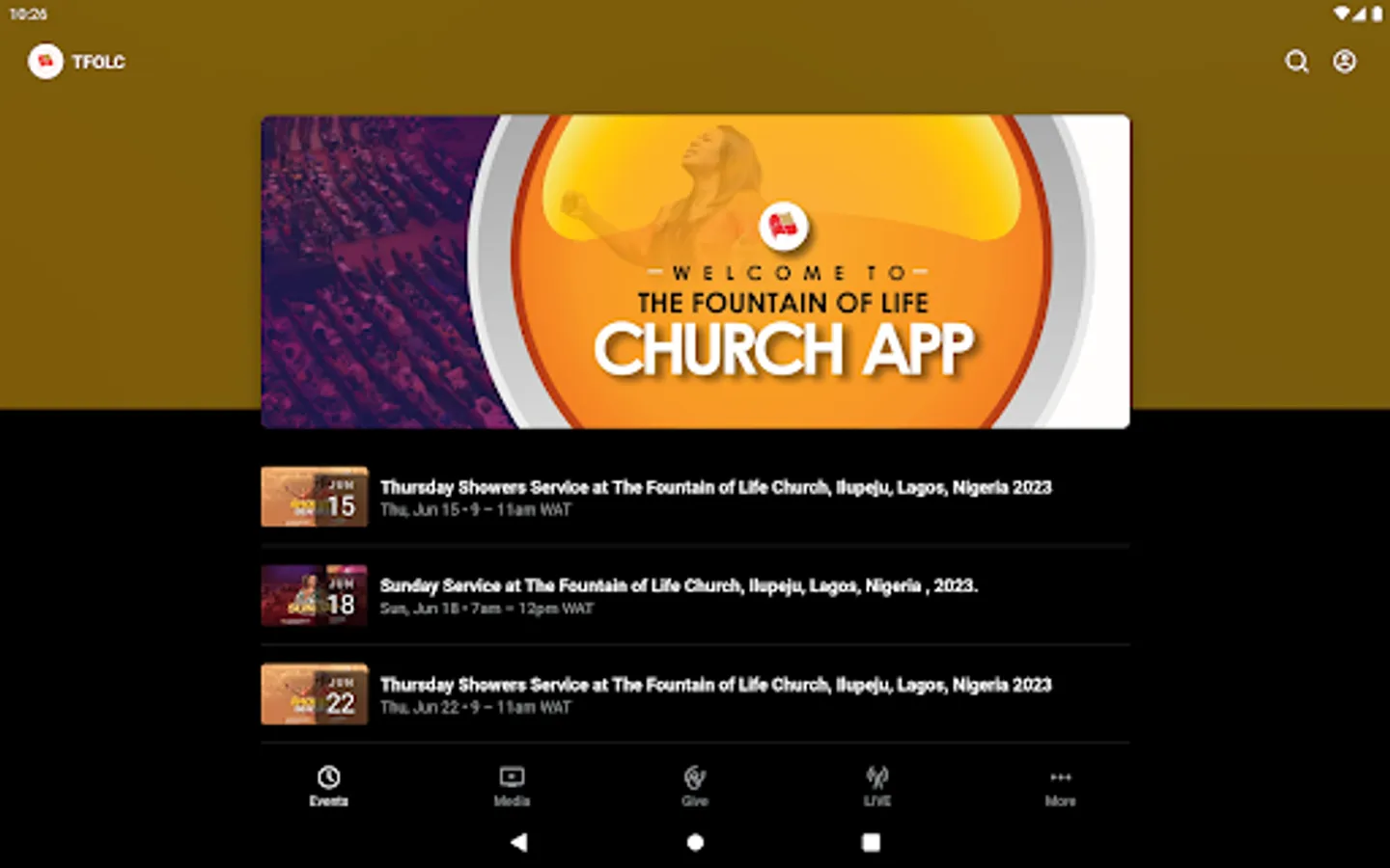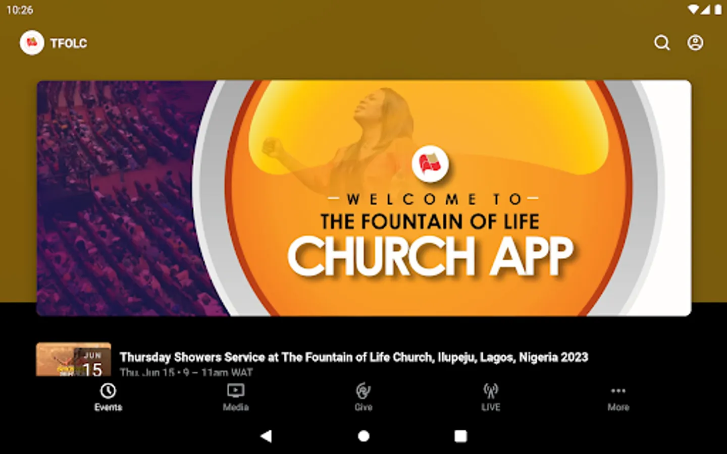 The The Fountain Of Life Church App was created by Subsplash
