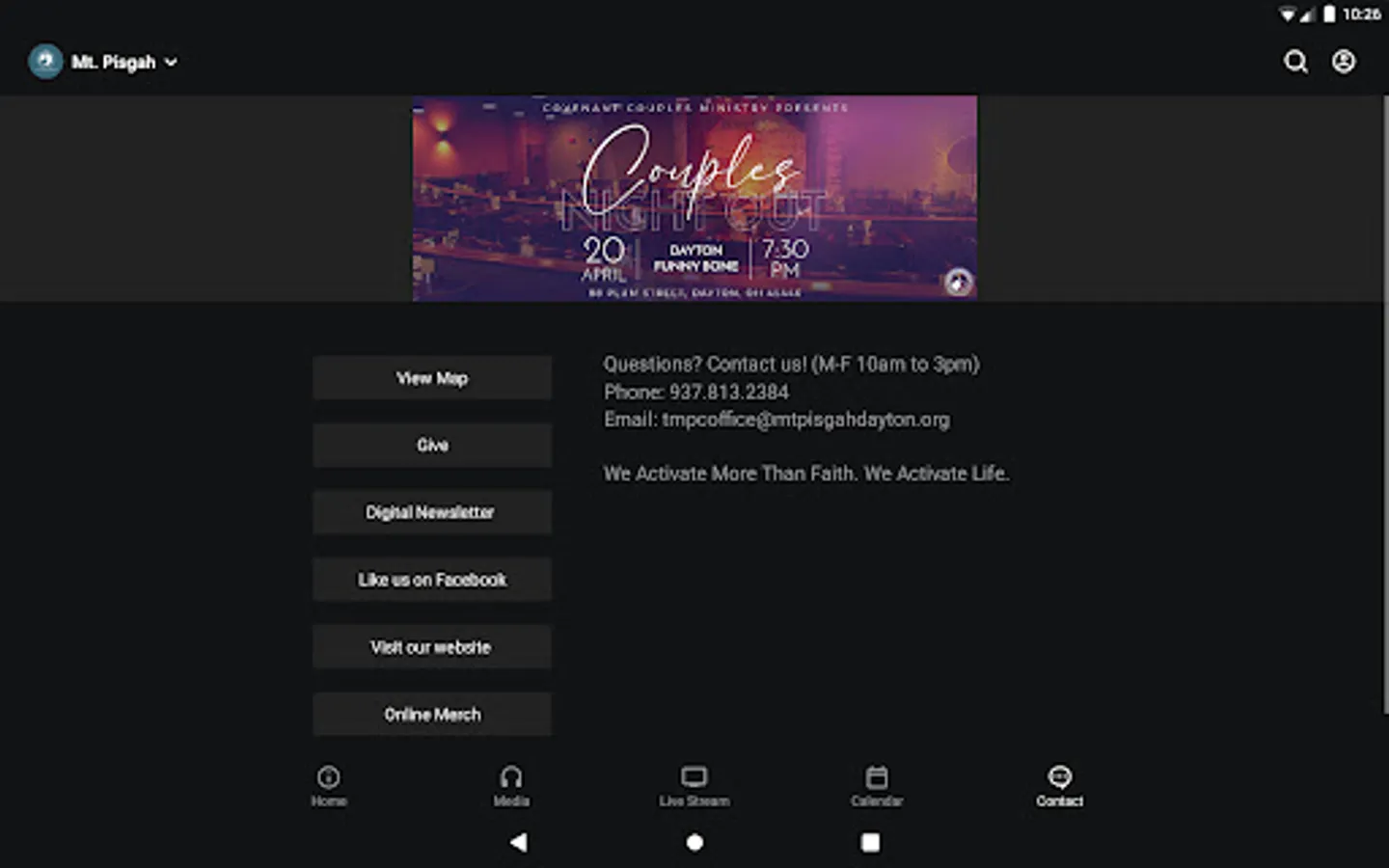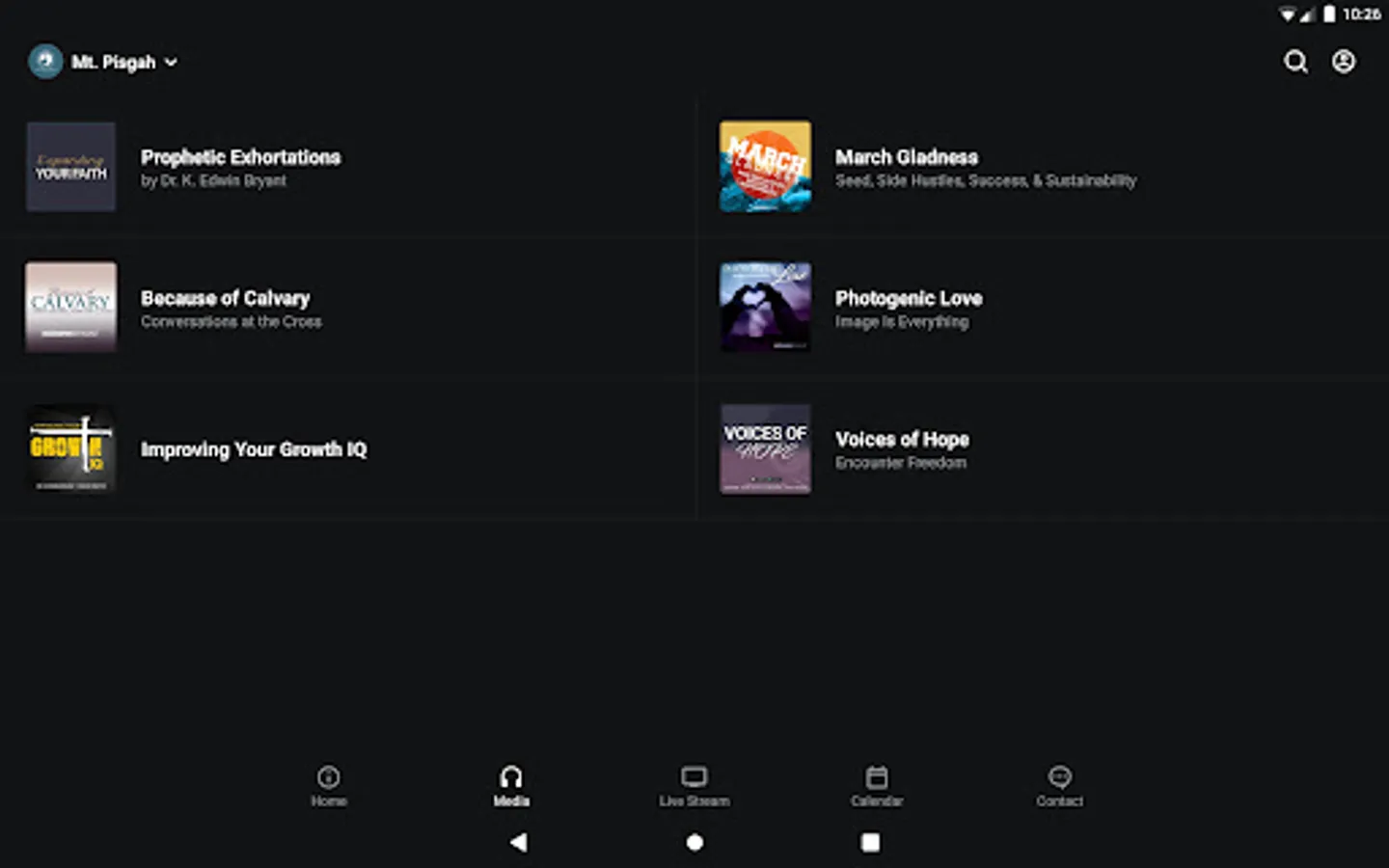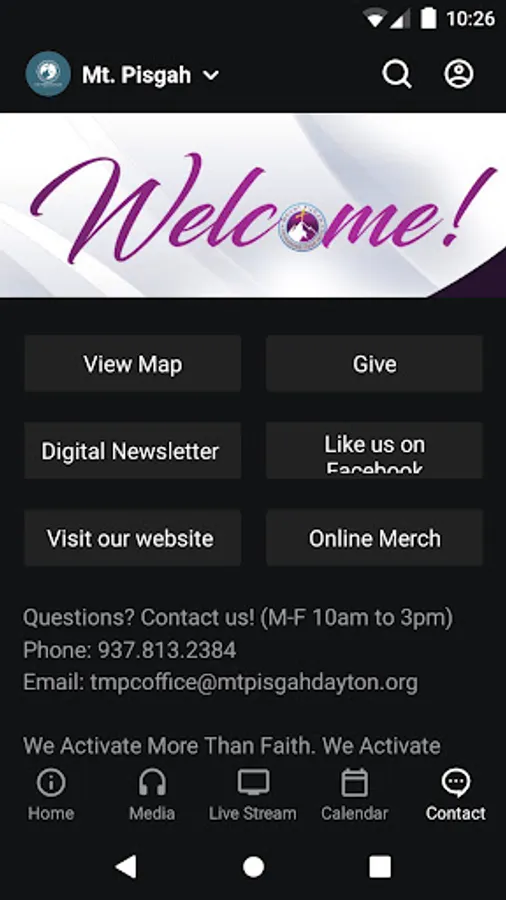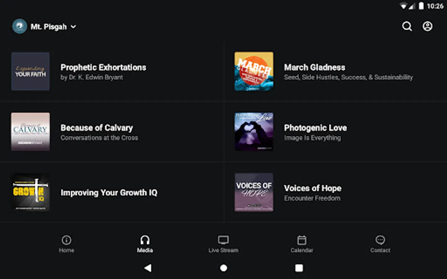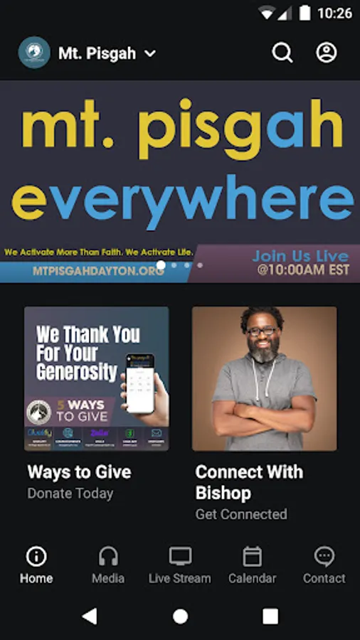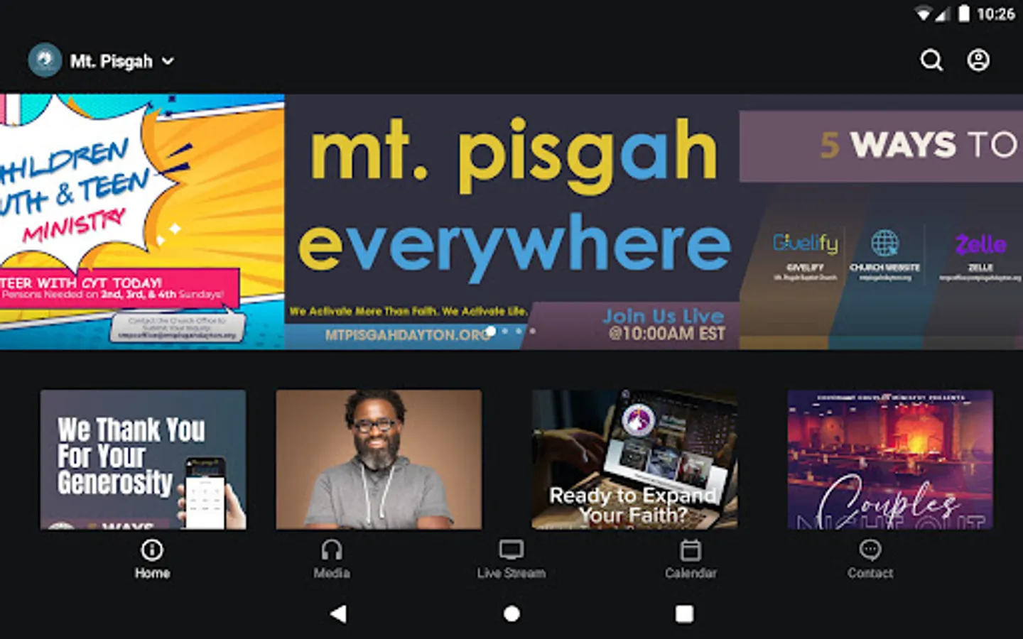 Welcome to the official Mount Pisgah Church application. We are a progressive ministry located in Dayton, OH and we guarantee that as you navigate within our App you will embody the momentum of Mount Pisgah's culture which encourages all to Enjoy Family, Expand Your Faith, Encounter Freedom, and Enhance Your Focus.
