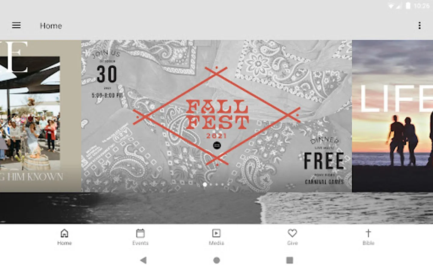 Take advantage of the Sunday button every week to engage in our service with weekend activities, sermon notes, and sign up features built right in! We've also given you an all new in app digital bulletin!