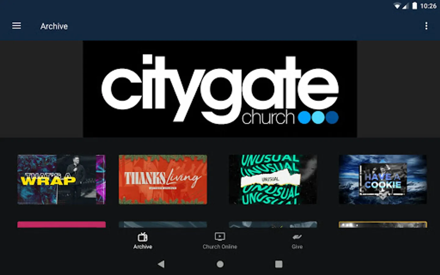 Welcome to the Citygate Church App! We exist to create a place where people can touch God, encounter Jesus Christ, and be radically changed and empowered by His Holy Spirit!