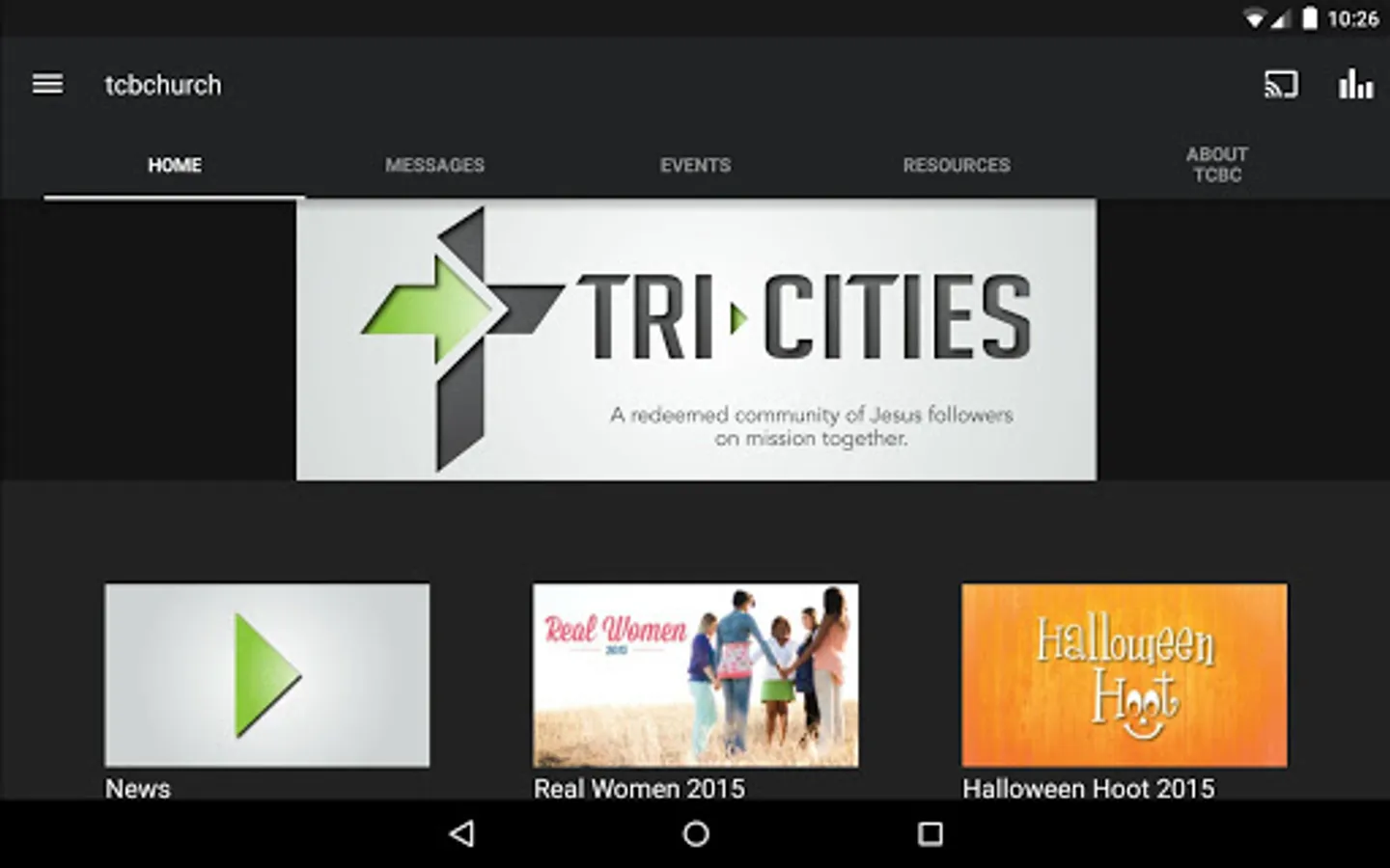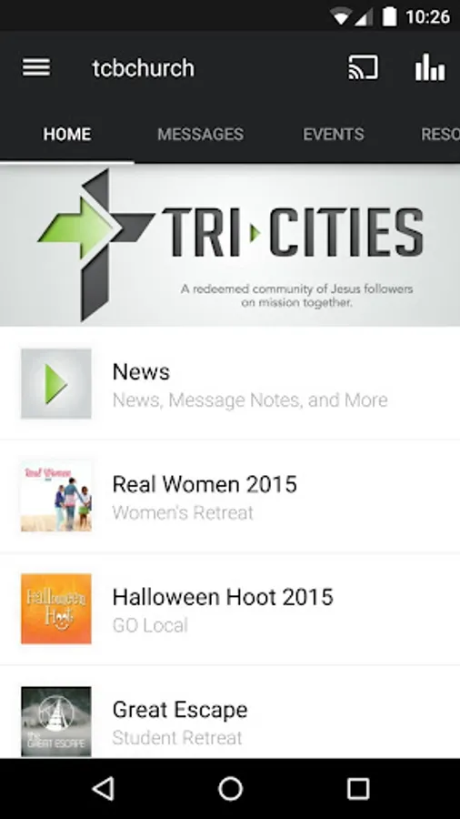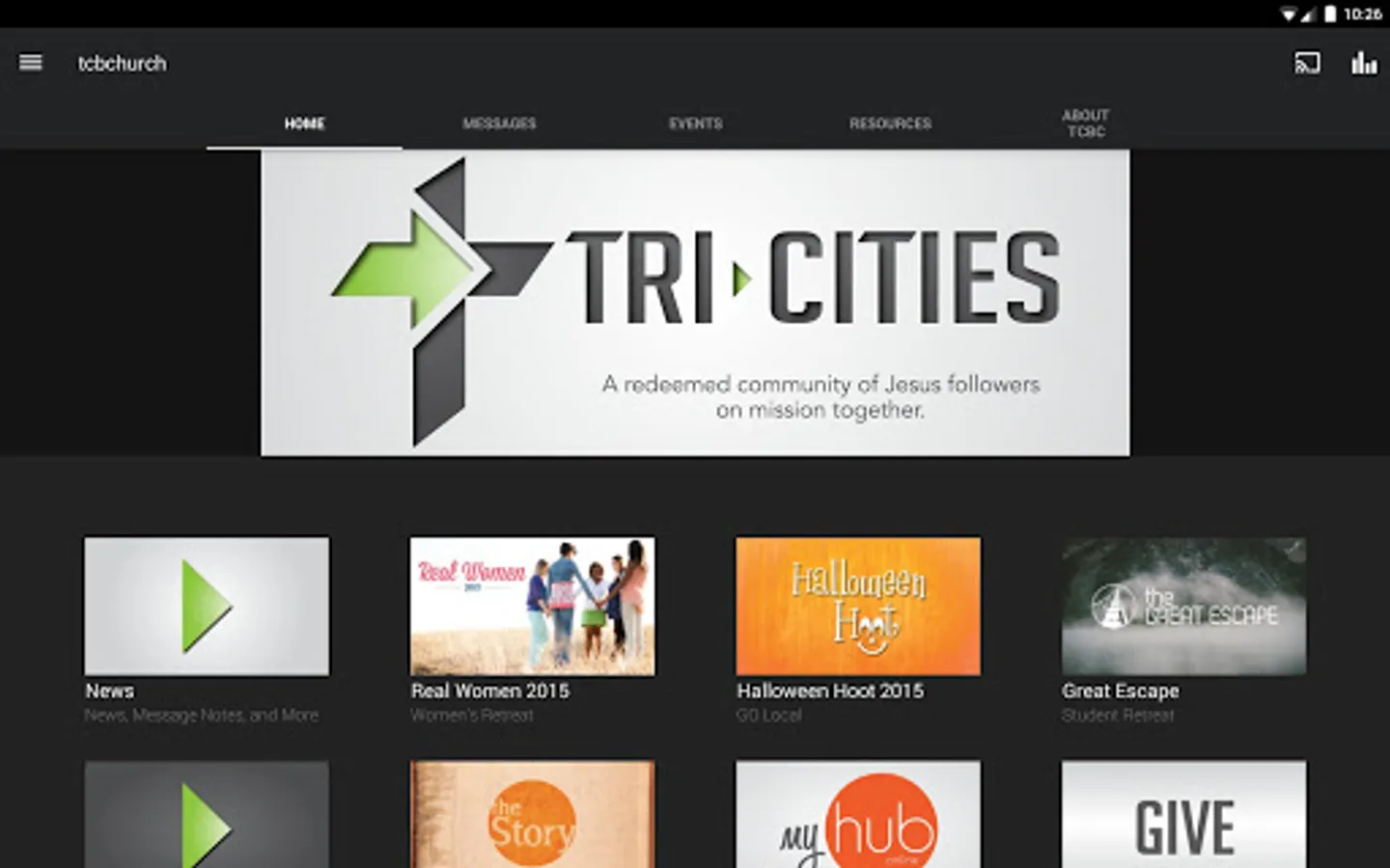 The Tri-Cities Baptist Church app was developed with the Subsplash App Platform.