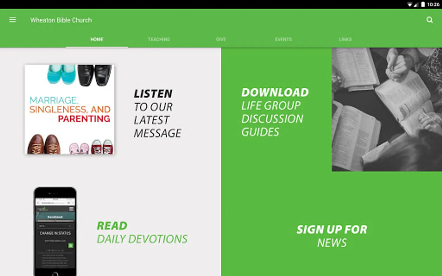 This app is packed with content and resources to help you grow and stay connected at Wheaton Bible Church. With this app you can: