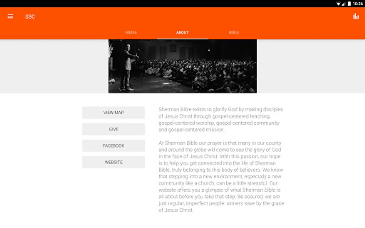 The official Sherman Bible App connects you to a variety of resources, including sermons, event information and more.