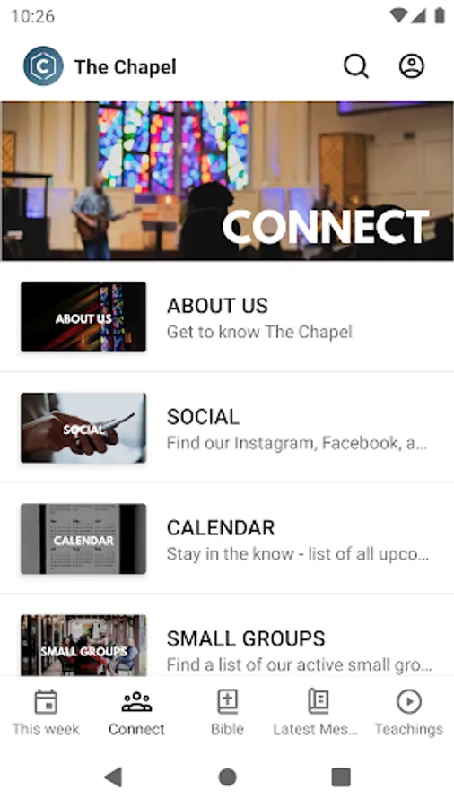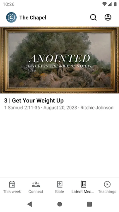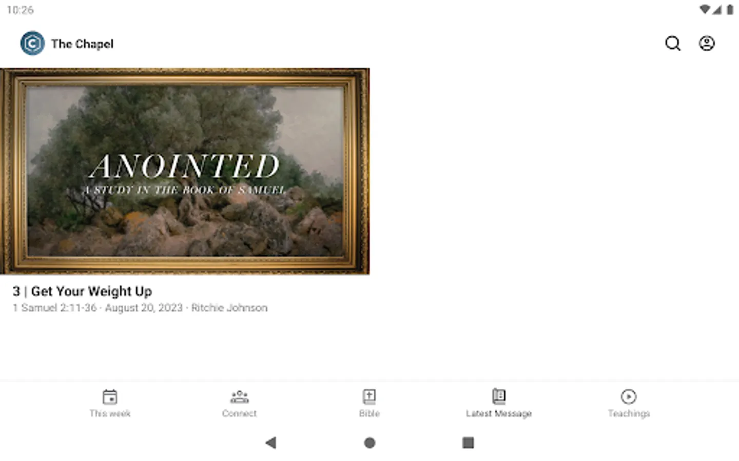 Welcome to The Chapel Cleveland! This app will help you stay connected with the day-to-day life of our church. With this app you can: watch or listen to past messages; stay up to date with push notifications; follow along with our Bible reading plan; share your favorite messages online; and download messages for offline listening.