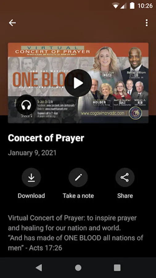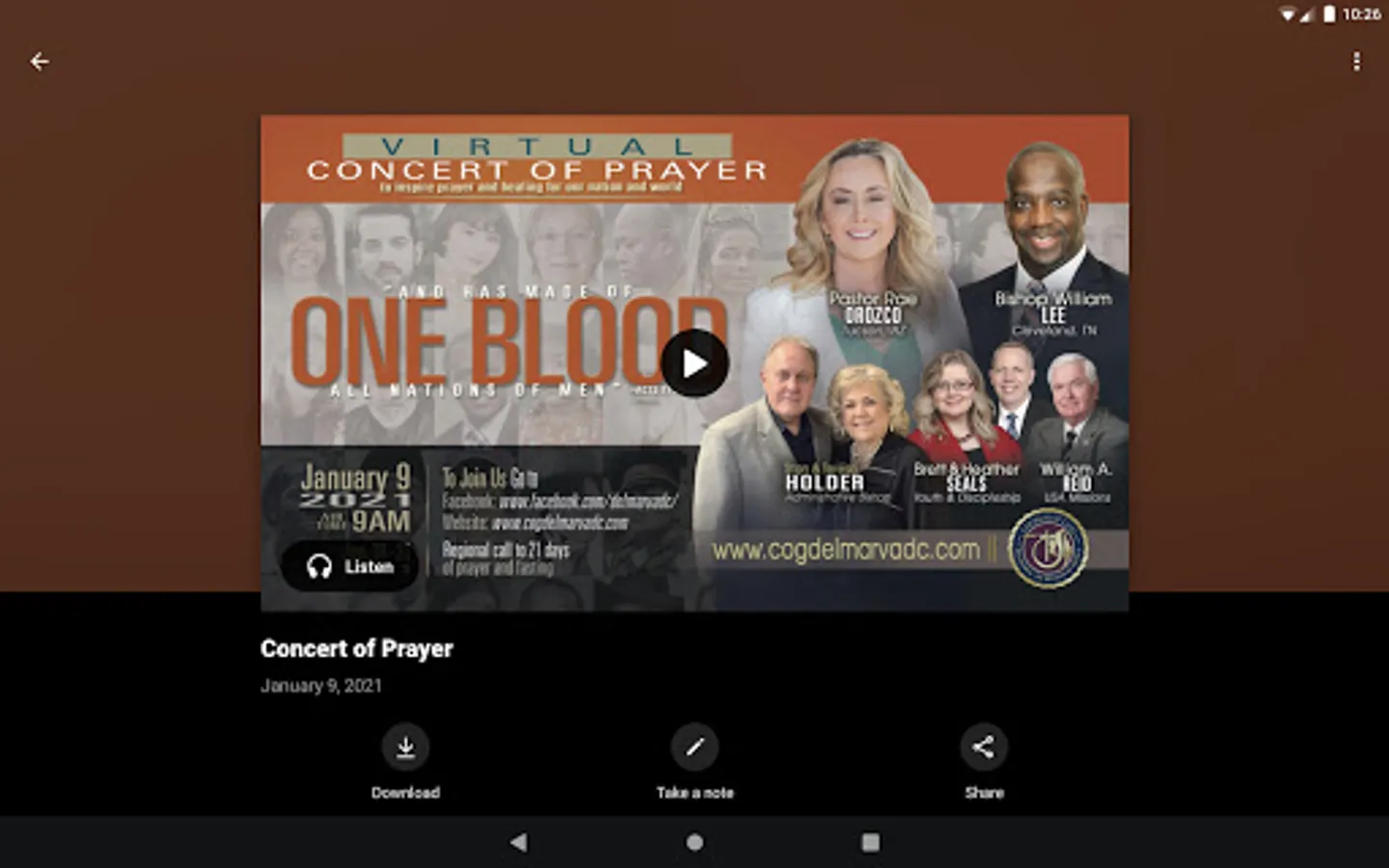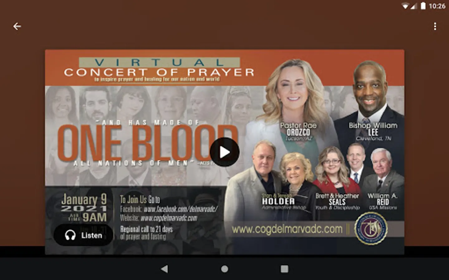 This app will help you stay connected with all regional events/personnel. With this app, you can: watch or listen to past messages; stay up to date with push notifications; share your favorite messages via Twitter, Facebook, or email; and download messages for offline listening.