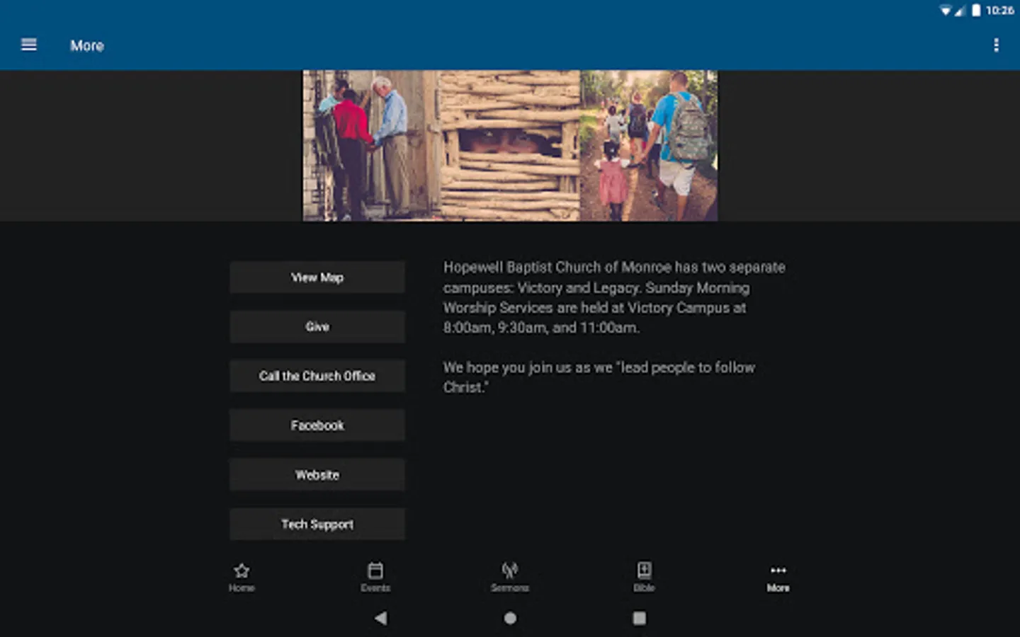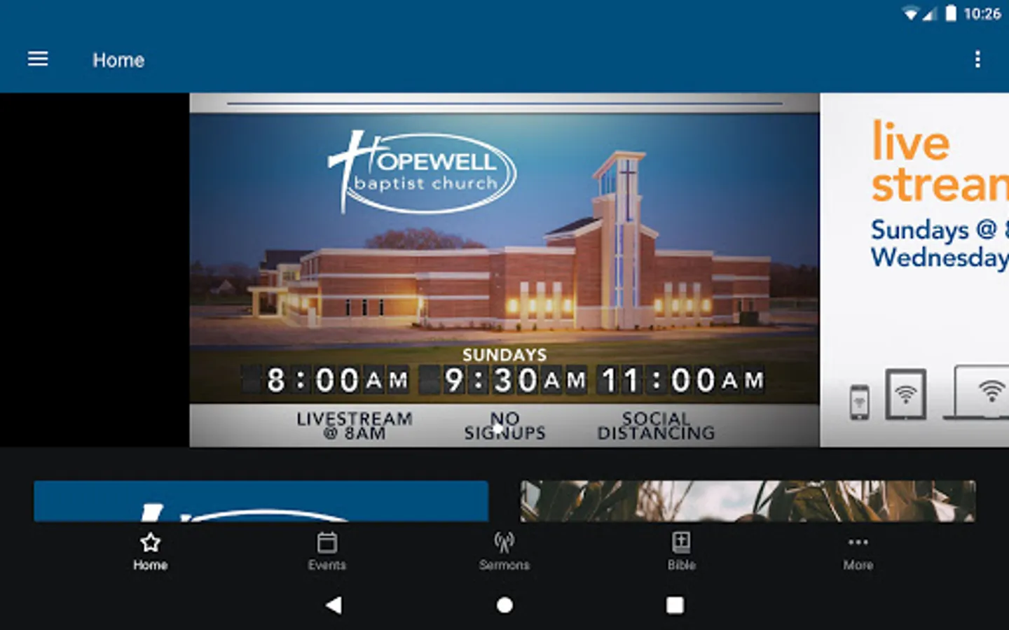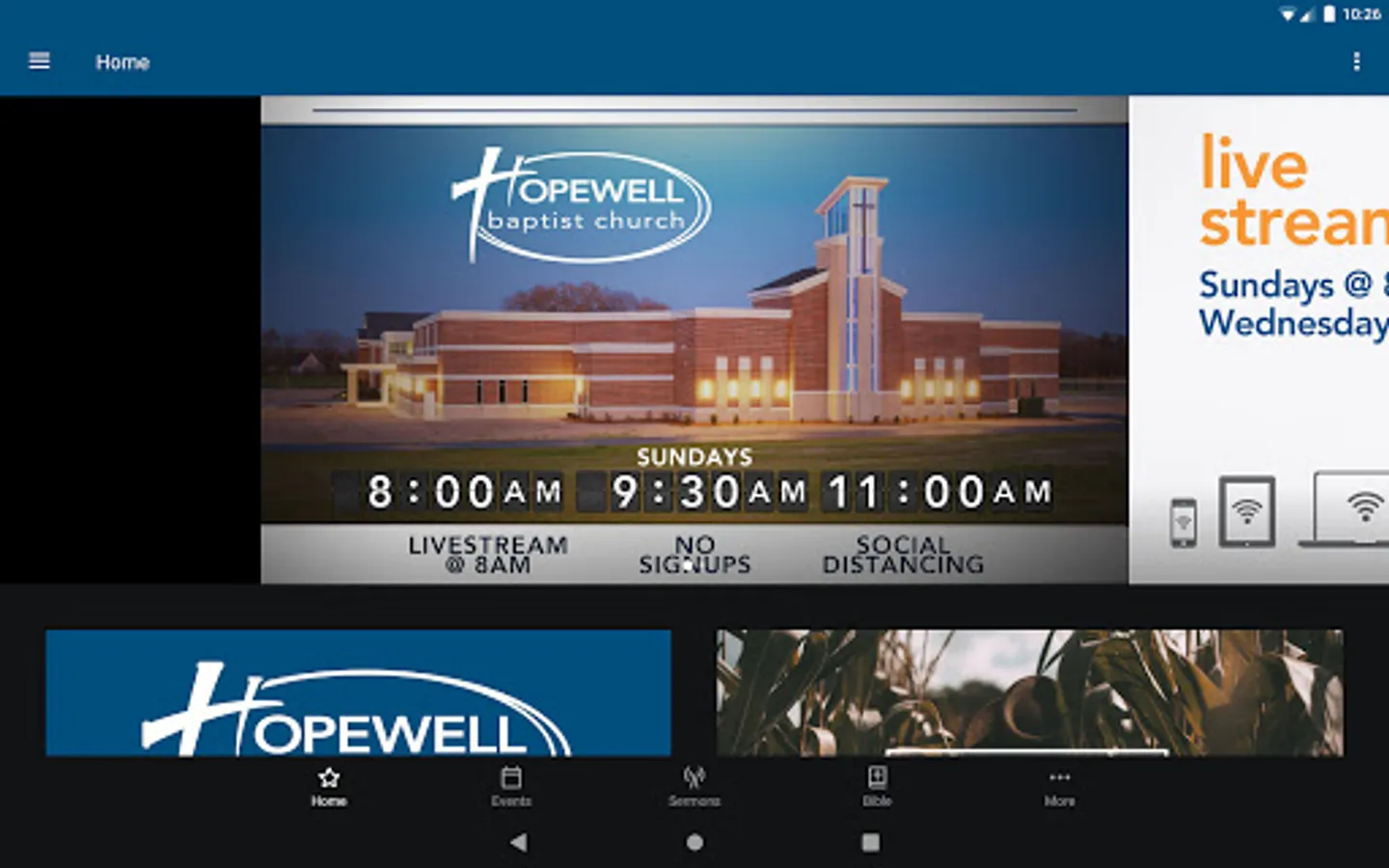 The Hopewell Baptist App was created with the Subsplash App Platform.