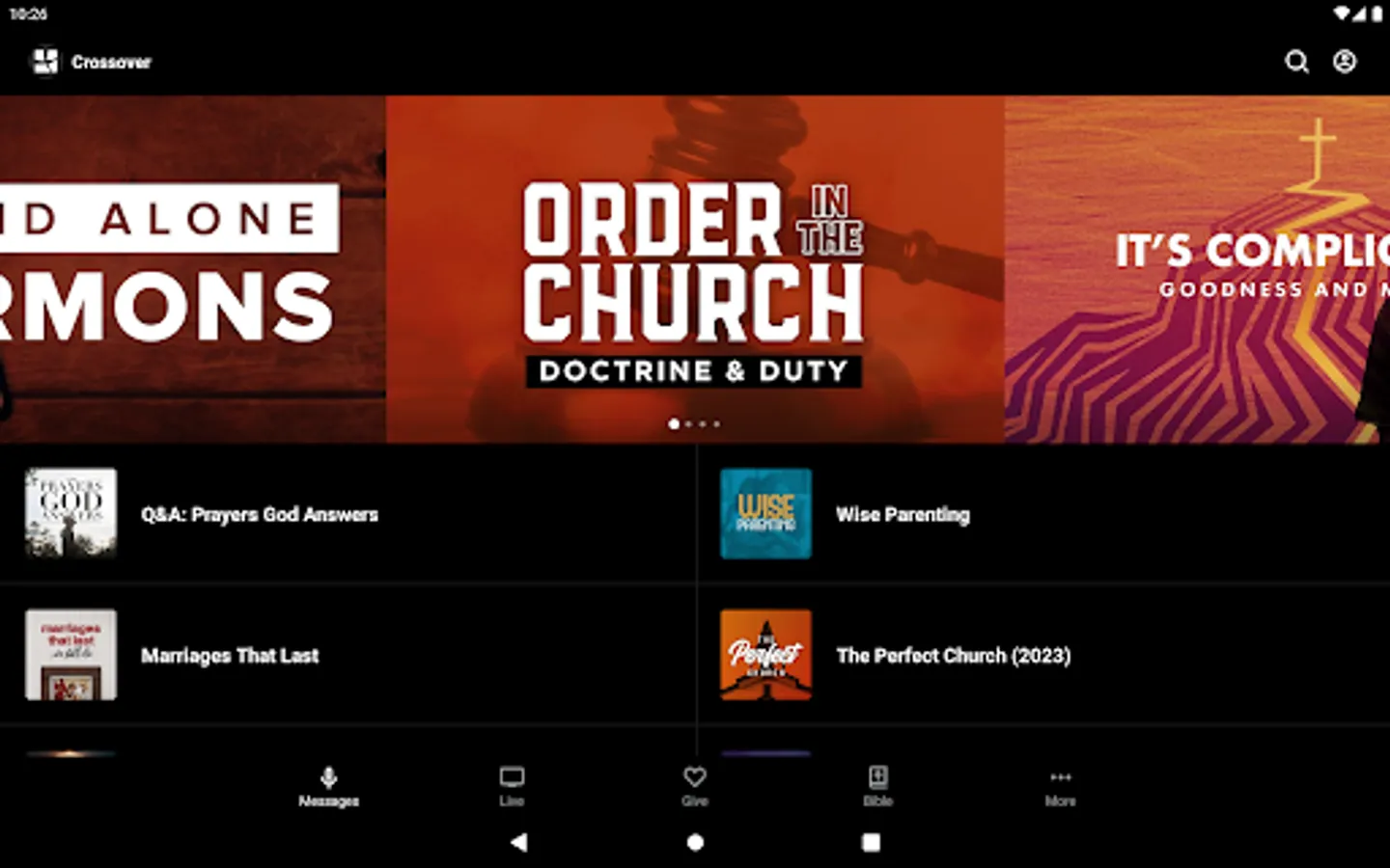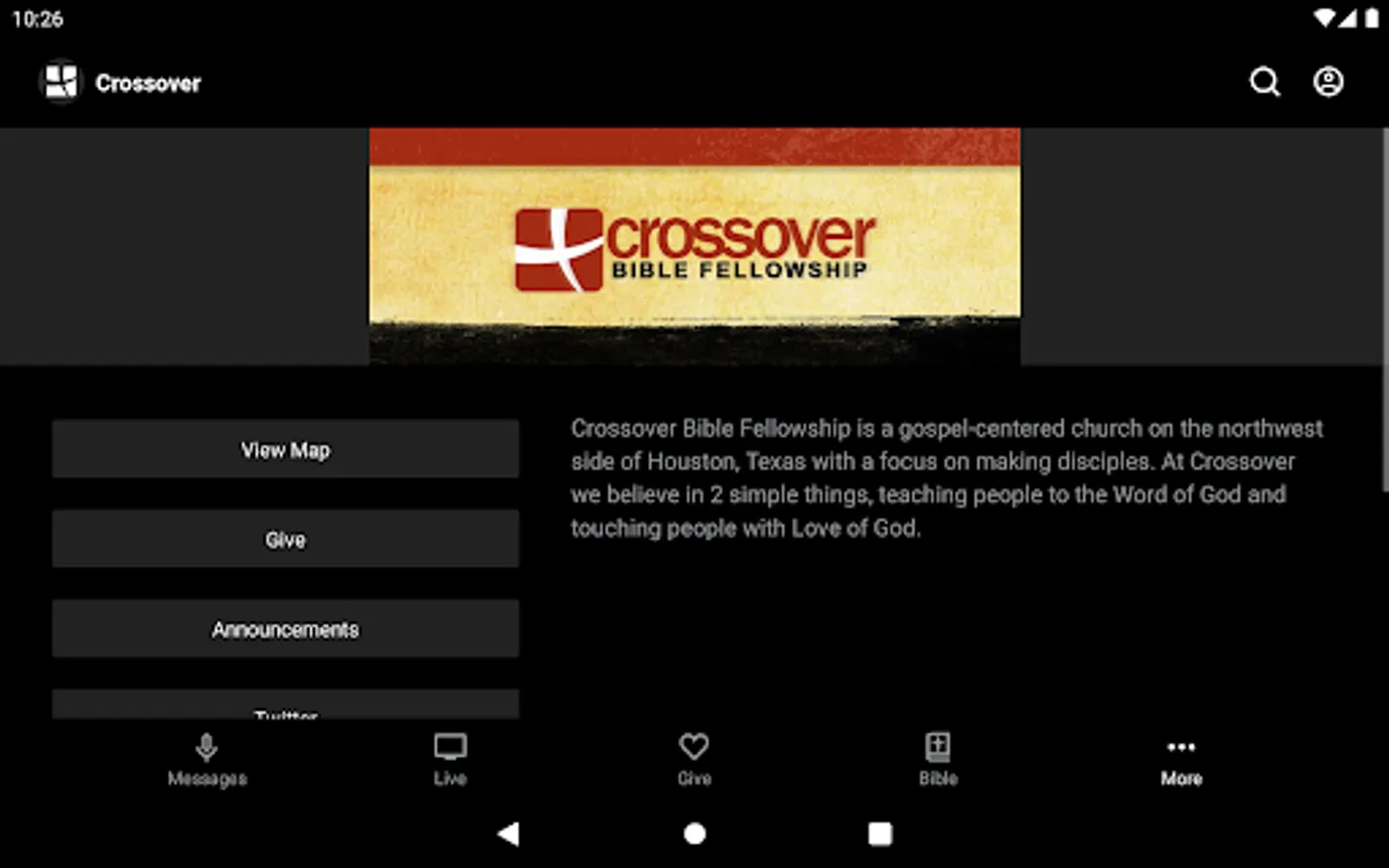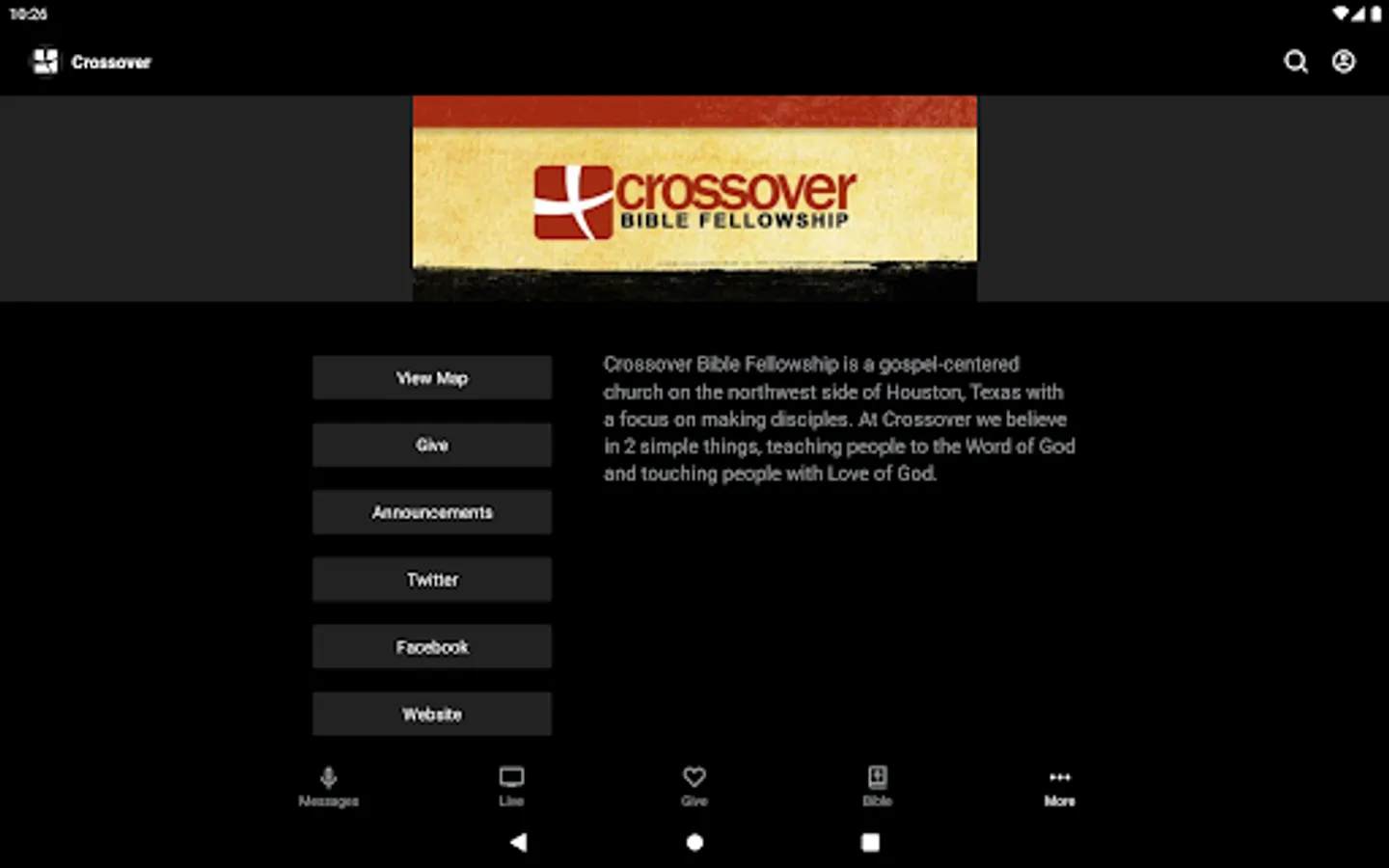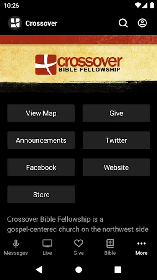 The Crossover Bible Fellowship App was created with the Subsplash App Platform.