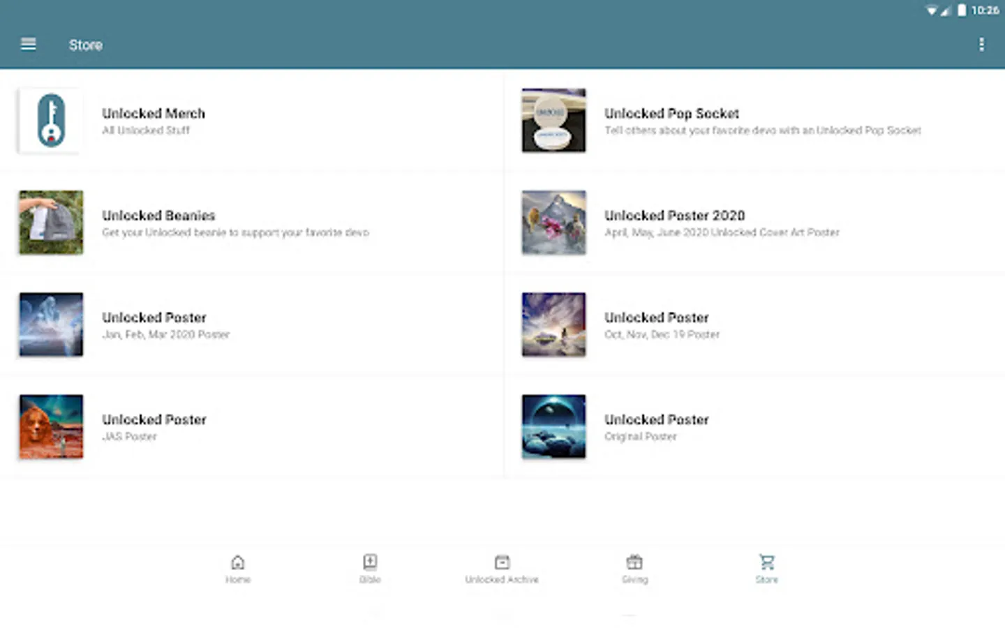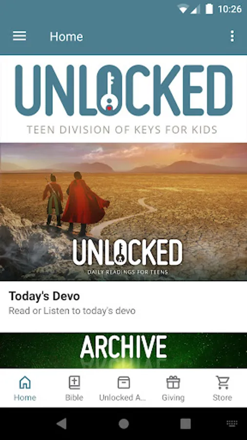 Unlocked is a quarterly devotional for teens featuring daily readings centered on God’s Word. You can read or listen each day. Each day’s devotion—whether fiction, poetry, or essay—asks the question: How does Jesus and what He did affect what we’re talking about? With daily readings designed to encourage discussion and a deeper walk with Christ, teens are encouraged both to engage with the Bible and to write and submit their own devotional pieces to Unlocked. With this app you can: