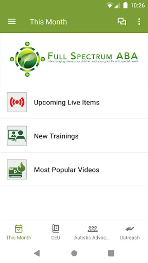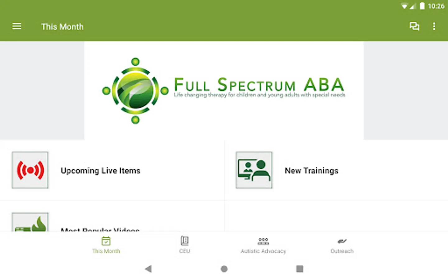 Free CEUs for ABA providers! The Full Spectrum ABA app offers free Continuing Education Units and simple means to verify each CEU. You will also find our Full Spectrum Behavior Institute Journal Clubs, our BIPOCcupation minority leadership program (led by Dr. Terrence Bryant, BCBA-D), our WomEntrepreneurship program (led by Dr. Jennifer Bellotti, BCBA-D), some of our new podcasts, our PGP trainings, our Bible Based ABA church inclusion program, and updates related to Autistic Advocacy, and information on all our branches.