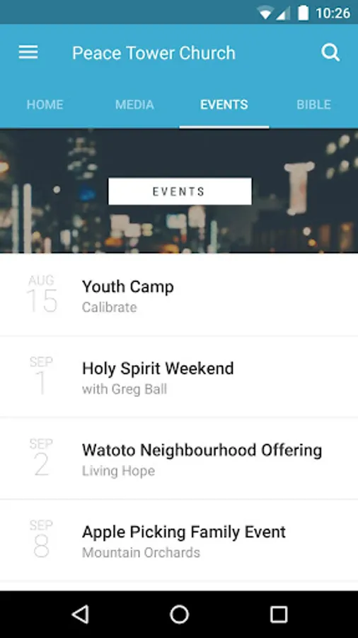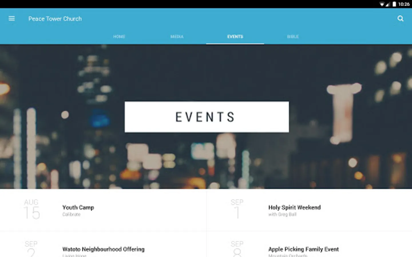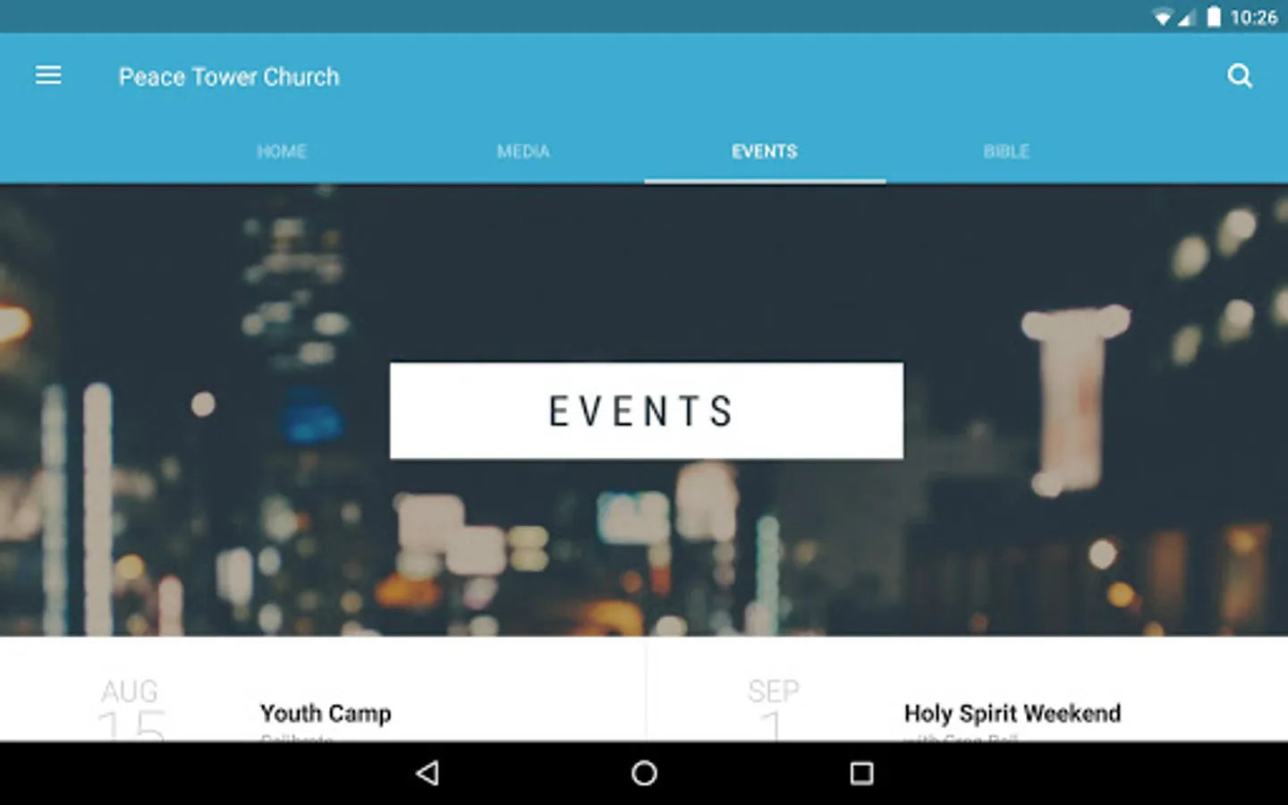 The Peace Tower Church App was created with the Subsplash App Platform.