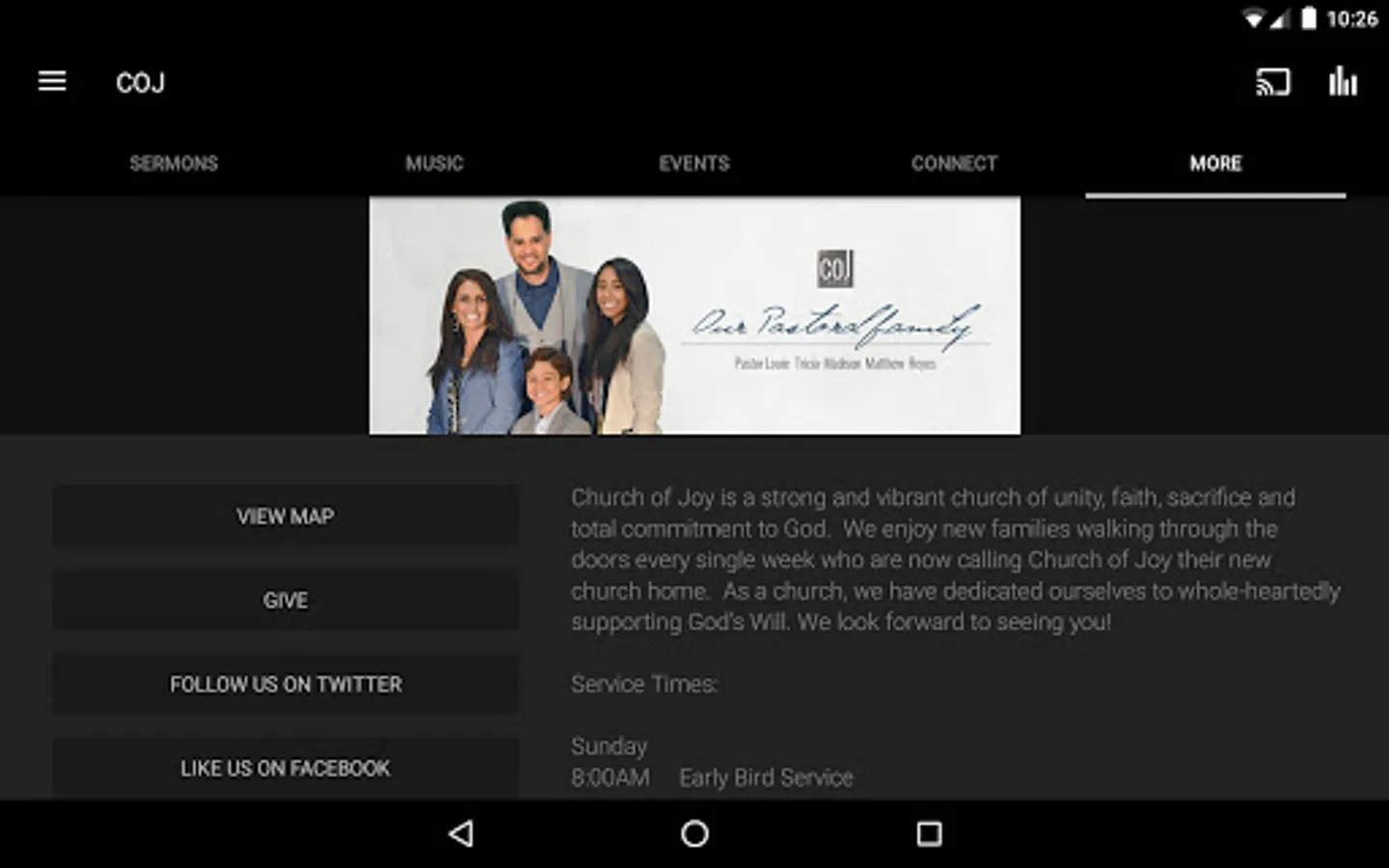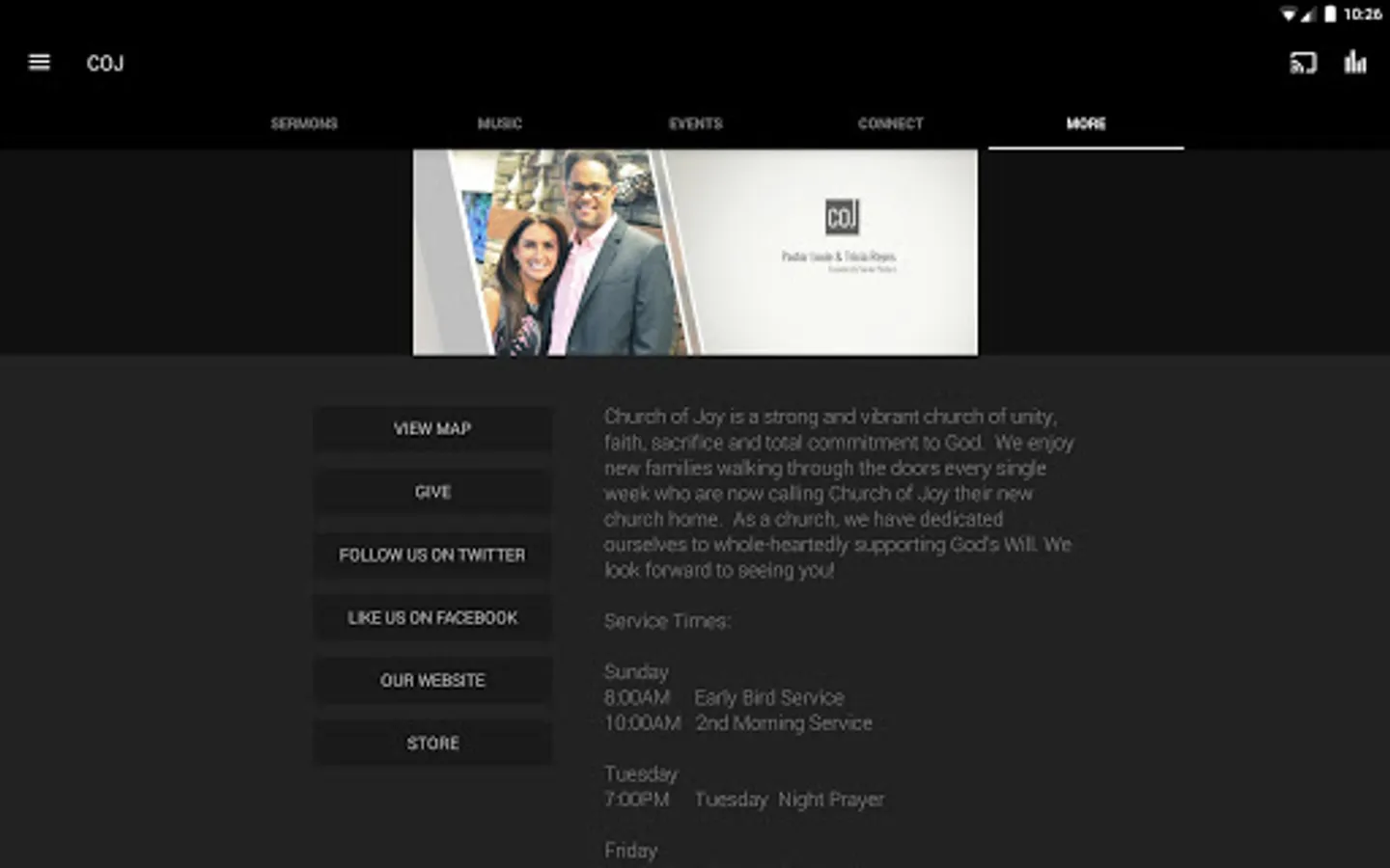 The Church of Joy App was created with the Subsplash App Platform.
