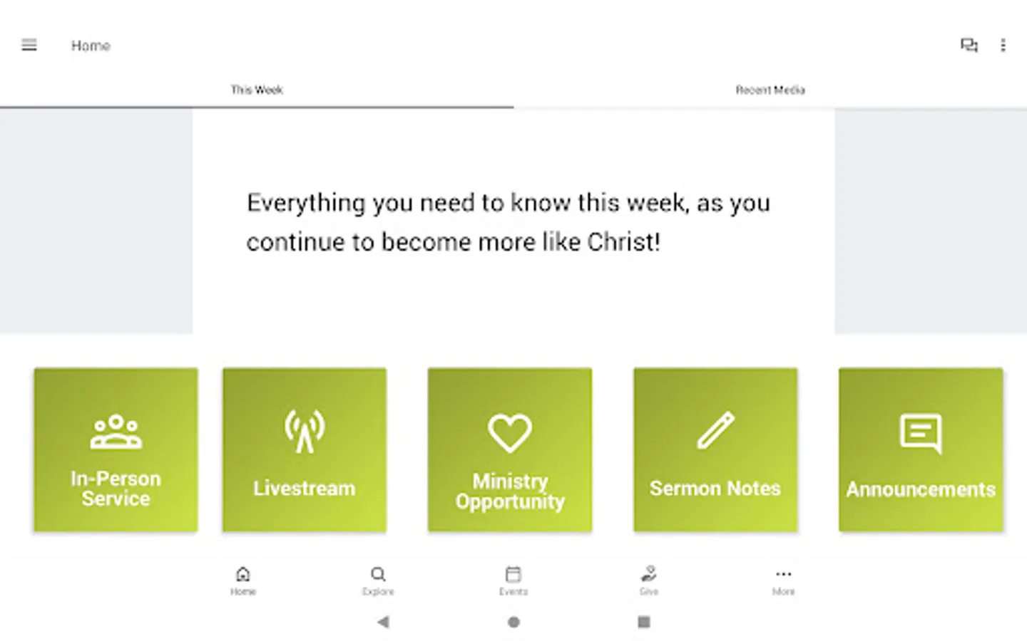 This app will help you stay connected with the day-to-day life of our church. With this app you can: