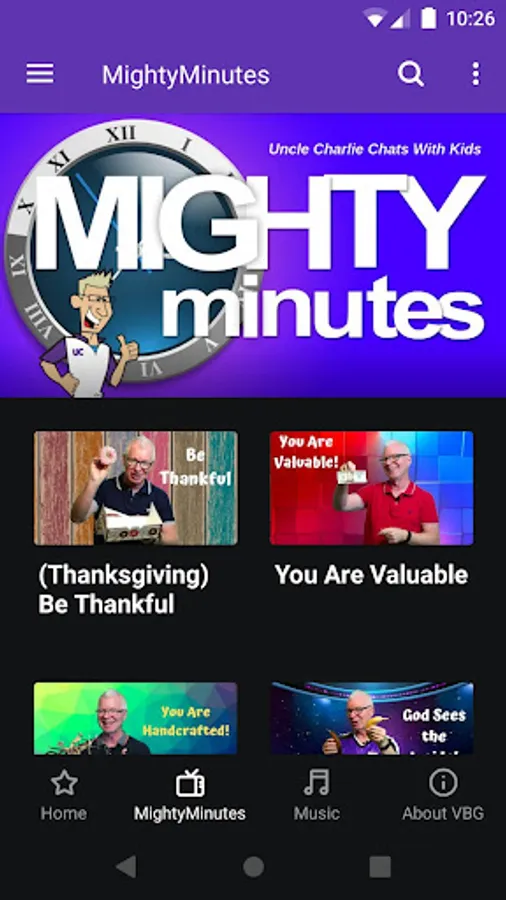 This app, created by Uncle Charlie Ministries, is packed with creative video content that encourages, edifies & inspires all kids, (especially kids fighting life's toughest battles).  This app includes: