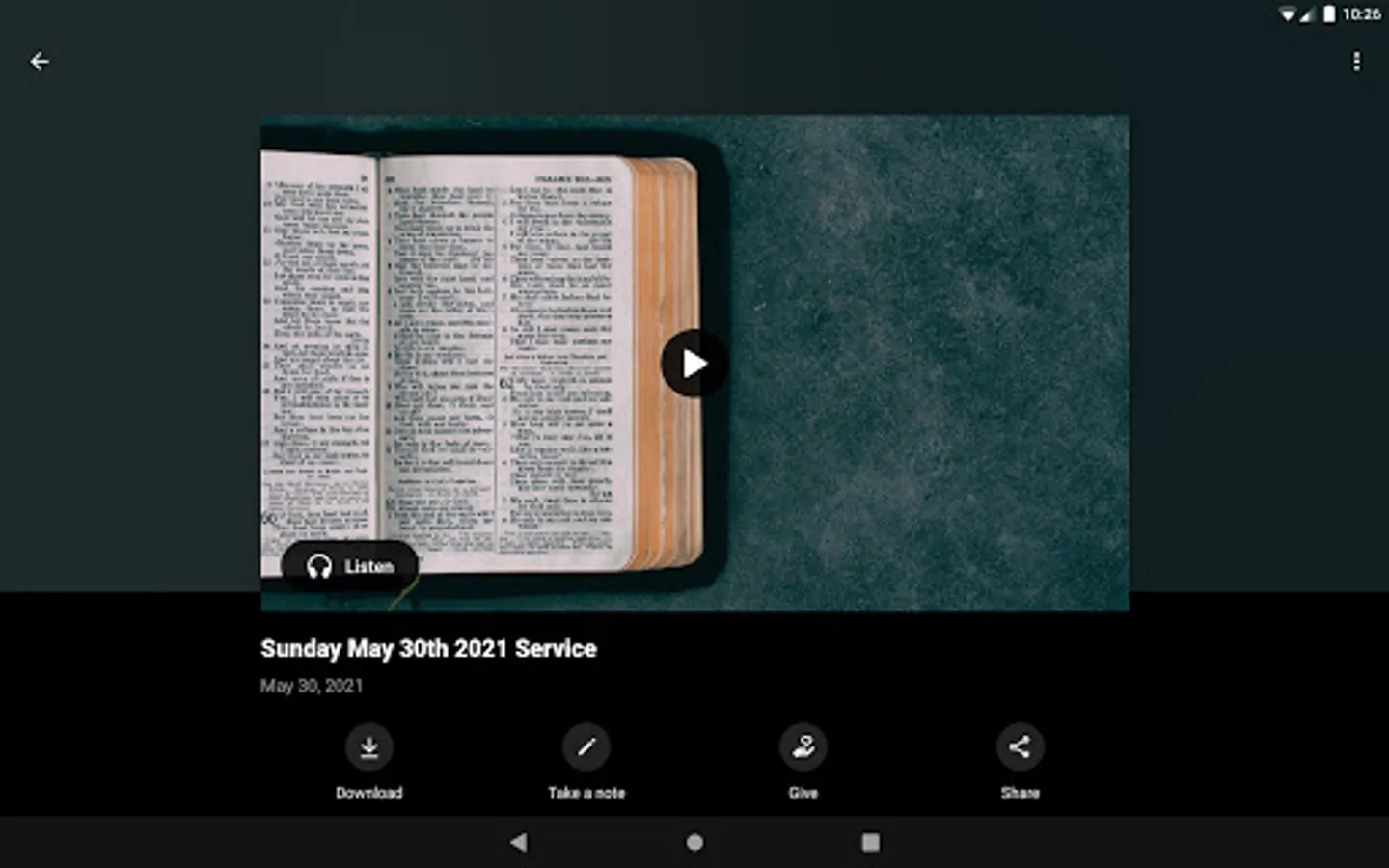 This app will help you stay connected with the day-to-day life of our church. With this app you can: watch past messages; stay up to date with push notifications; share your favorite messages via Facebook or email; and download messages for offline listening.